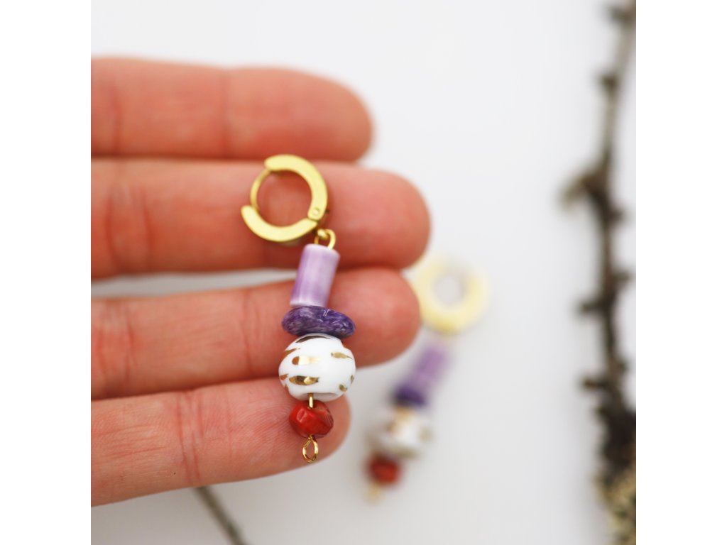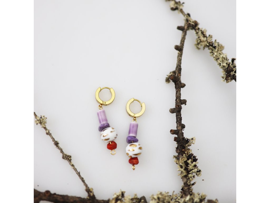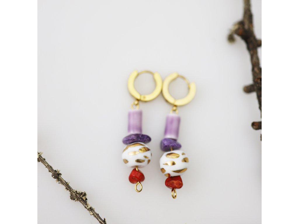Rozzáří tvář své nositelky! Kouzelné náušnice s porcelánovým korálkem malovaným pravým zlatem ocení boho - milovnice, jakož i ženy, kterým se občas zachce okořenit každodenní outfit něčím jedinečným. Elegance hravě, barevně a hlavně - originálně!