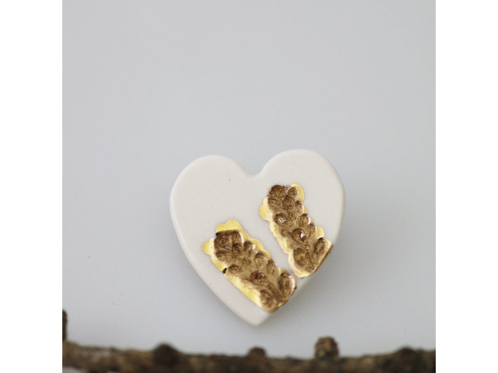 Originální srdce se zlatým otiskem přírody Vám dodá styl. Skvěle vynikne na klopě saka, na halence pozvedne outfit formálnějšího tónu ale i romantické rozevláté šaty...