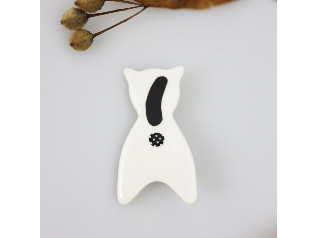 Originální porcelánová brož se nese v sofistikovaném duchu, kdy zdánlivě jasným sdělením prozrazuje třeba i něco o své nositelce. Efektní brož vynikne na mnohém z vašich svetrů, halenek nebo kabátků, skvěle je oživí a dodá jim vtip i originalitu. Usmívejte se na svět s nadhledem této kočky!