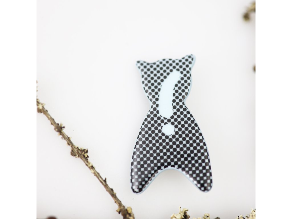 Originální porcelánová brož se nese v sofistikovaném duchu, kdy zdánlivě jasným sdělením prozrazuje třeba i něco o své nositelce. Efektní brož vynikne na mnohém z vašich svetrů, halenek nebo kabátků, skvěle je oživí a dodá jim vtip i originalitu. Usmívejte se na svět s nadhledem této kočky!