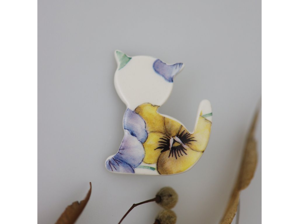Osvěžte svůj styl! Originální porcelánová brož Kočka s krásnými květy. Kousek plný něhy, romantiky i vtipu dodá Vašemu outfitu nevšednost i špetku hravosti. S touto porcelánovou broží můžete zkrášlit jednoduché šaty pro denní nošení, halenku nebo svetřík.