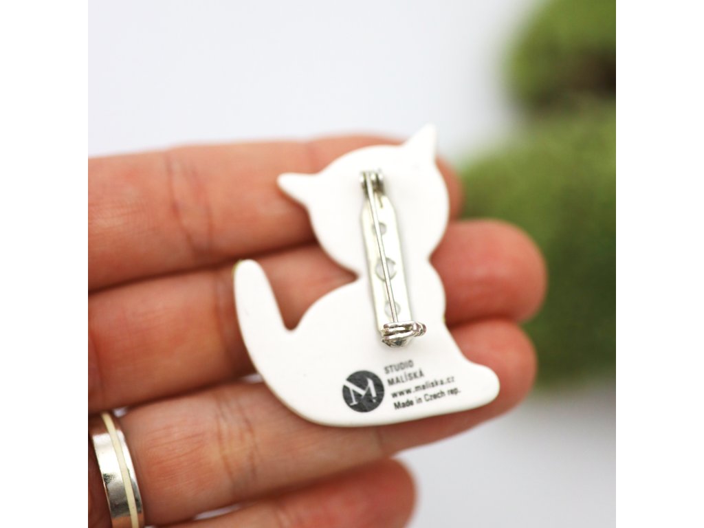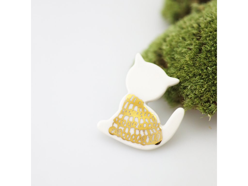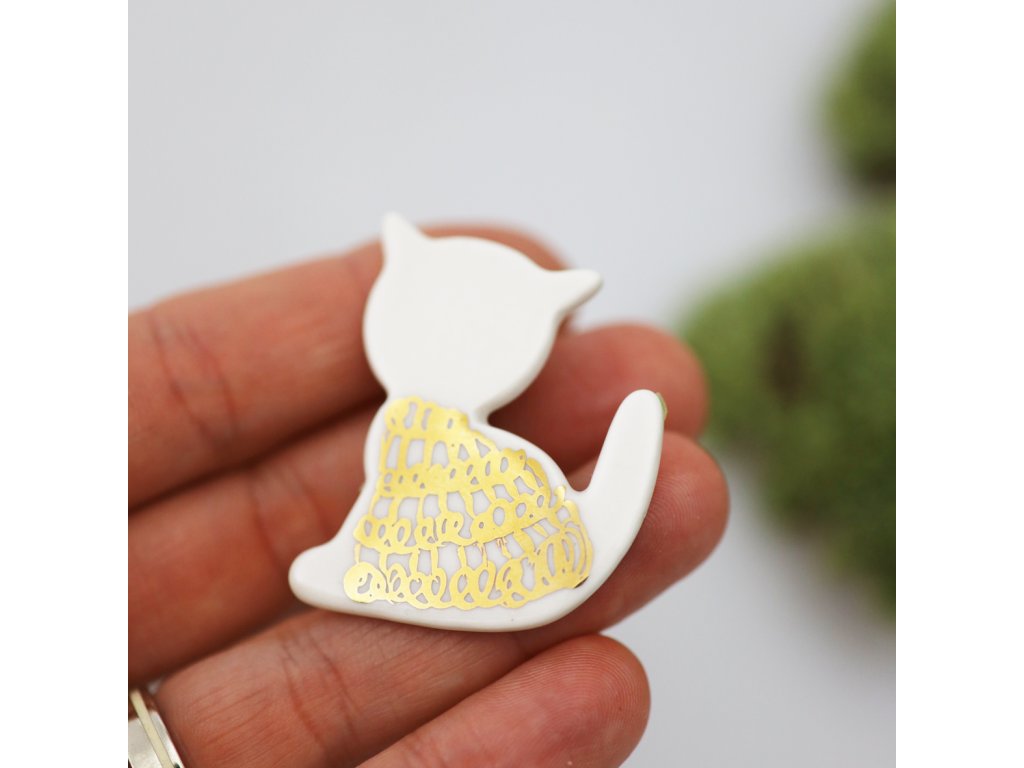 Porcelánová brož Kočka je malovaná ručně pravým zlatem a rozzáří nejedny oči. Má vtip i eleganci, Váš outfit krásně osvěží a rozradostní. Každý den s ní se stane svátkem. Neváhejte být svá a originální!