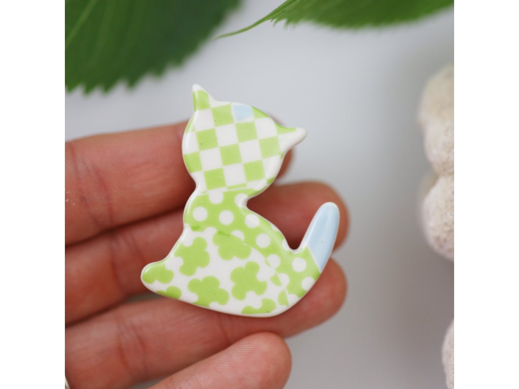 Stylový kousek přinese svěží vánek do Vašeho šatníku - originální porcelánová brož Kočka se světlounce zeleným dekorem, který doplňují detaily ve světle modré. Zajímavý, hravě elegantní porcelánová brož bude s jemností kočce vlastní zdobit halenku, košili, svetr i šaty. Dodejte Vašemu outfitu líbeznou společnost!