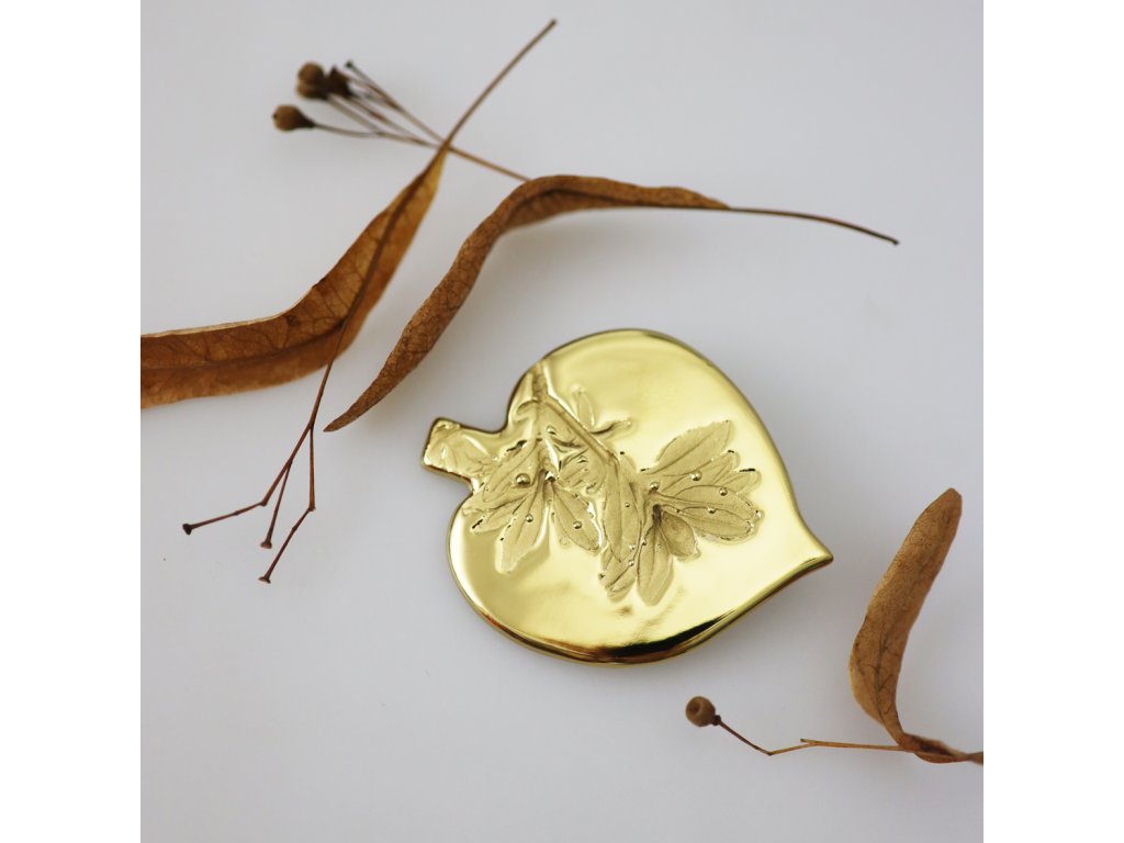 Jemná, sofistikovaná elegance s mocným nádechem luxusu... Taková je porcelánová brož Lípa se zlatem (vytvořeno technikou naglazurního pokovení).