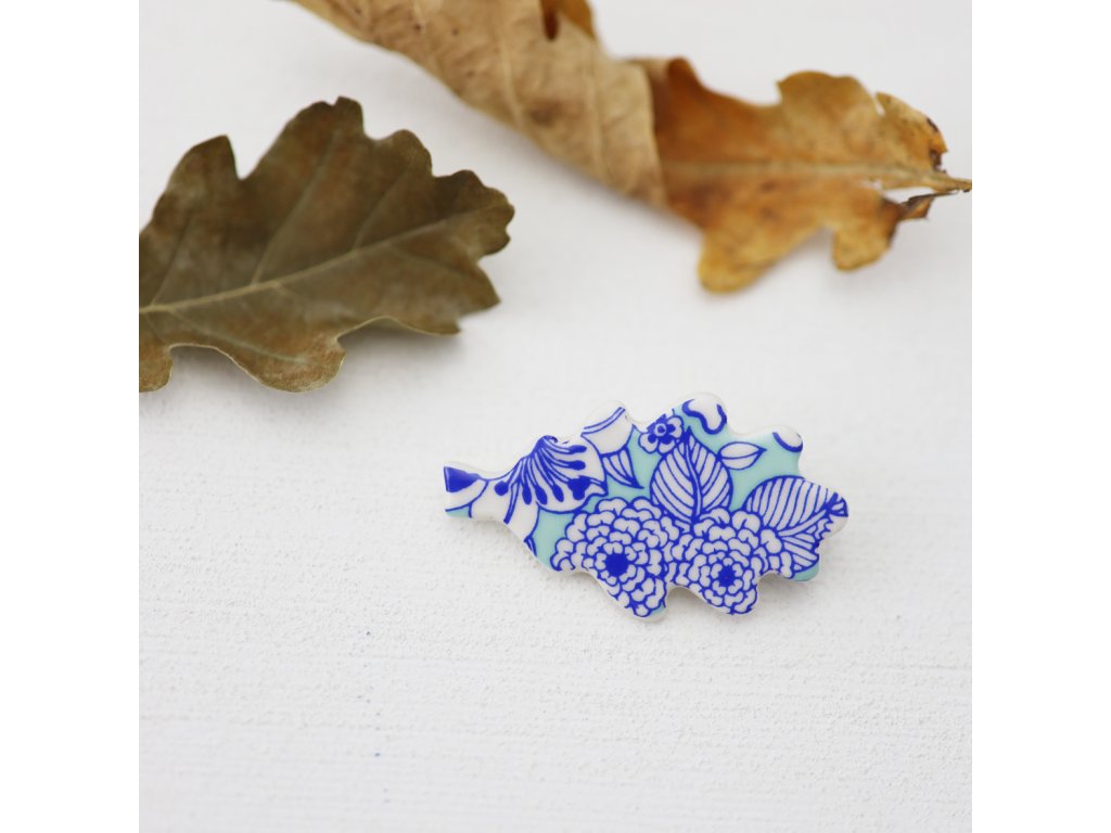 Čím zpestřit kabát či svetřík? Originální porcelánová brož ve tvaru dubového lísku dokáže divy. Překrásný dekor stylizovaných květů a lístků nese barvy, které mají šťávu a energii. Ozvláštněte svou bundu, kabát, sáčko nebo svetr či halenku. Tato brož určená pro každodenní nošení je jako pohádka z říše fantazie a své kouzlo přenechá i vám...