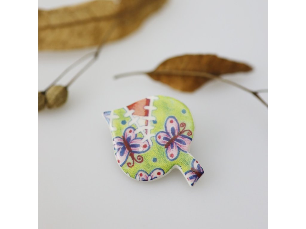 Radostná originální porcelánová brož Lísteček obohatí Váš outfit.