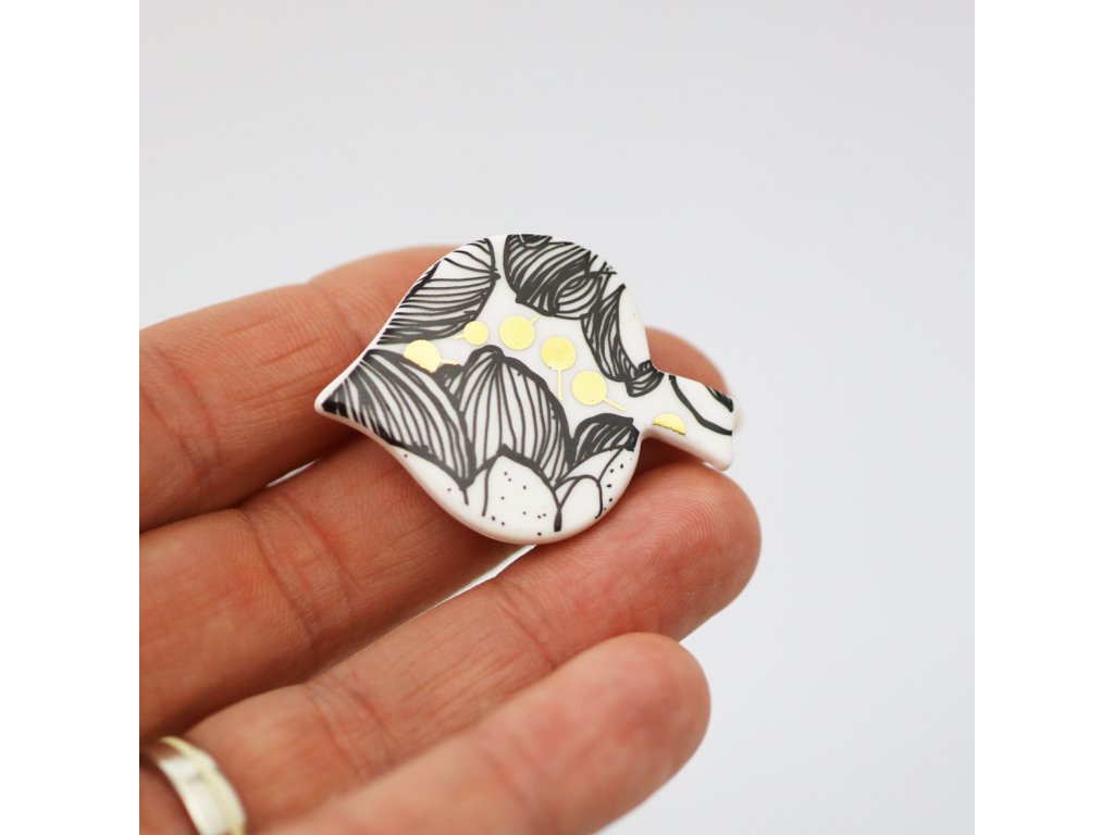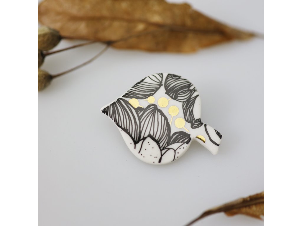 Originální porcelánová brož Lísteček, která doplní Váš outfit přesně tak, jak si přejete. Skvěle se bude vyjímat na klopě saka, na kapse, na šatech i na halence.