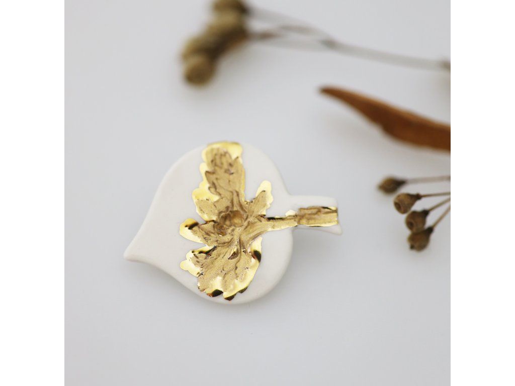 Bílo-zlatá elegance s kapkou poezie... Ozvláštněte svůj vzhled neopakovatelným šperkem - porcelánovou broží Lístek z kolekce Paměť krajiny. Unikátní otisk přírody spolu s uměleckým citem dávají broži neopakovatelný nádech. Oslňte i Vy touto skvostnou broží, kterou můžete nosit prakticky kamkoli.