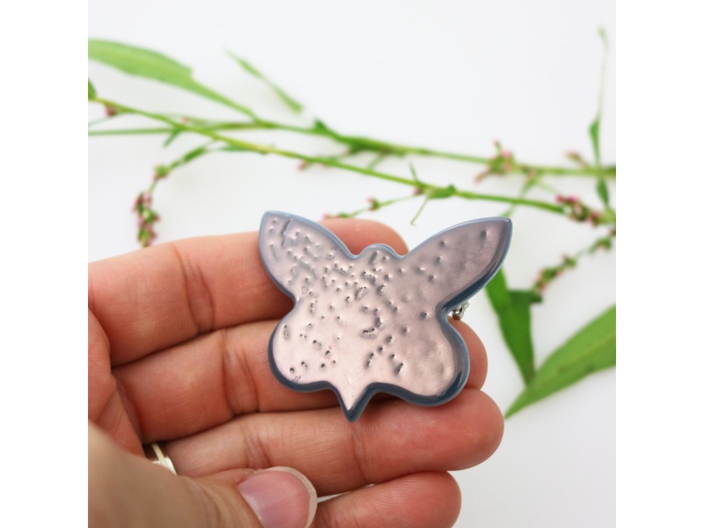 Nádherná autorská brož Motýl z karlovarského porcelánu v unikátním šedo-perleťovém lesku (vytvořeno technikou naglazurního pokovení) bude patřit mezi skvosty, které originálně ozdobí a doplní Váš outfit. Jednoduchý svetřík nebo šaty se promění v žádoucí model. Už ho vidíte na některém ze svých svršků? Pak musí patřit Vám!