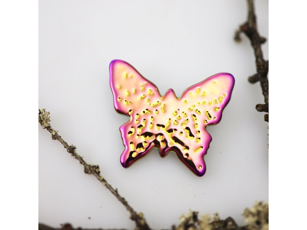 Dopřejte si něco nádherného! Originální porcelánová brož s reliéfem bude to pravé. Úžasný motýl symbolizuje přeměnu, ve svých růžových a zlatých odlescích pak lásku i sílu. Brož plná krásy, jemné extravagance a pozitivní energie probouzí skvělé emoce a na vašich šatech nebo i kabátu bude působit jako magnet. Žádoucí pozornost zaručena. Z jednoduchého oděvu vykouzlí něco nového. Hodí se i pro slavnostní příležitosti.