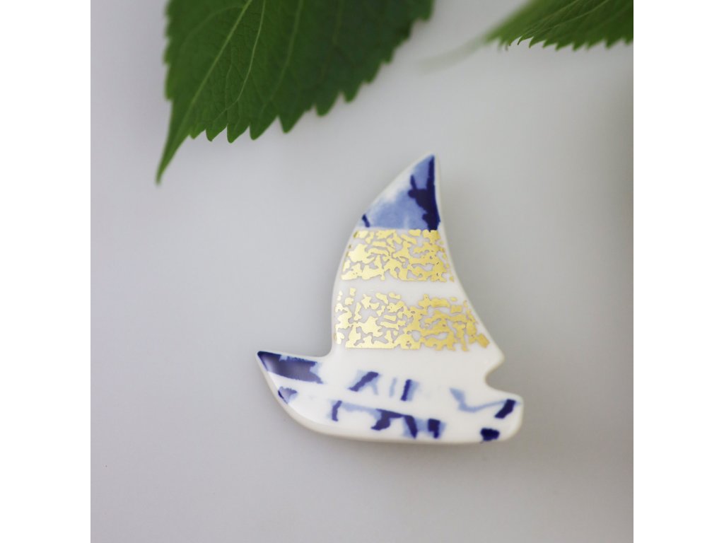 Mámivou představu o výletech po širém moři přináší tento šperk. Elegantní a nápaditý doplněk Vašeho outfitu ve formě této originální porcelánové brože Plachetnice dozajista oceníte. Vynikne na šatech i halence, nebo třeba na klopě saka. Nechte se inspirovat, a dovolte této skvostné broži, aby přinesla čerstvý vítr do Vašeho šatníku! Zkrášlí nejeden kousek. Překrásné zlaté zdobení spolu s kobaltově modrými odstíny připomínají sluneční zář, vodu i nebe. Ať je Vaše cesta krásná, hladina klidná a počasí slunečné!
