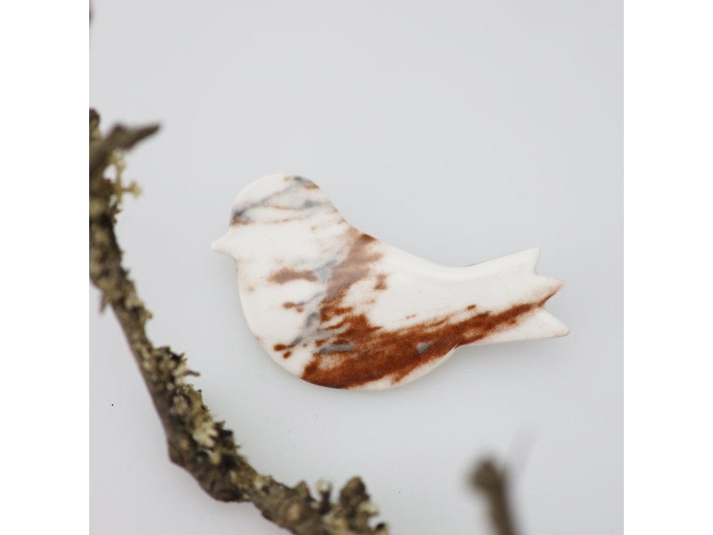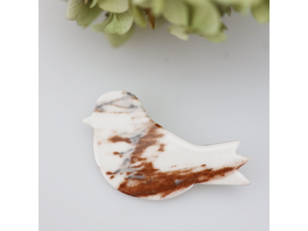 Touto originální porcelánovou broží výtečně doplníte podzimní outfity. Zajímavý doplněk vynikne na kabátku, svetru i halence. Zemité barvy dekoru připomínají, že podzim má svou poezii a krásu. Buďte i vy v podzimní dny krásná a originální!