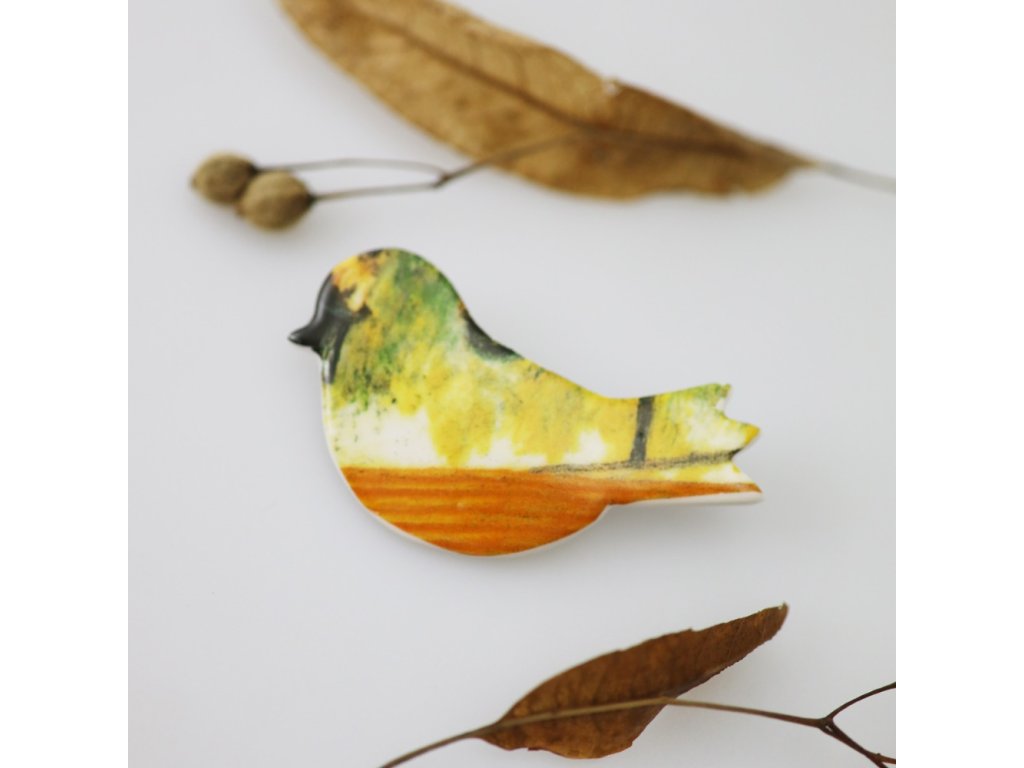 Originální porcelánová brož. Zajímavý doplněk vynikne na kabátku, svetru i halence.