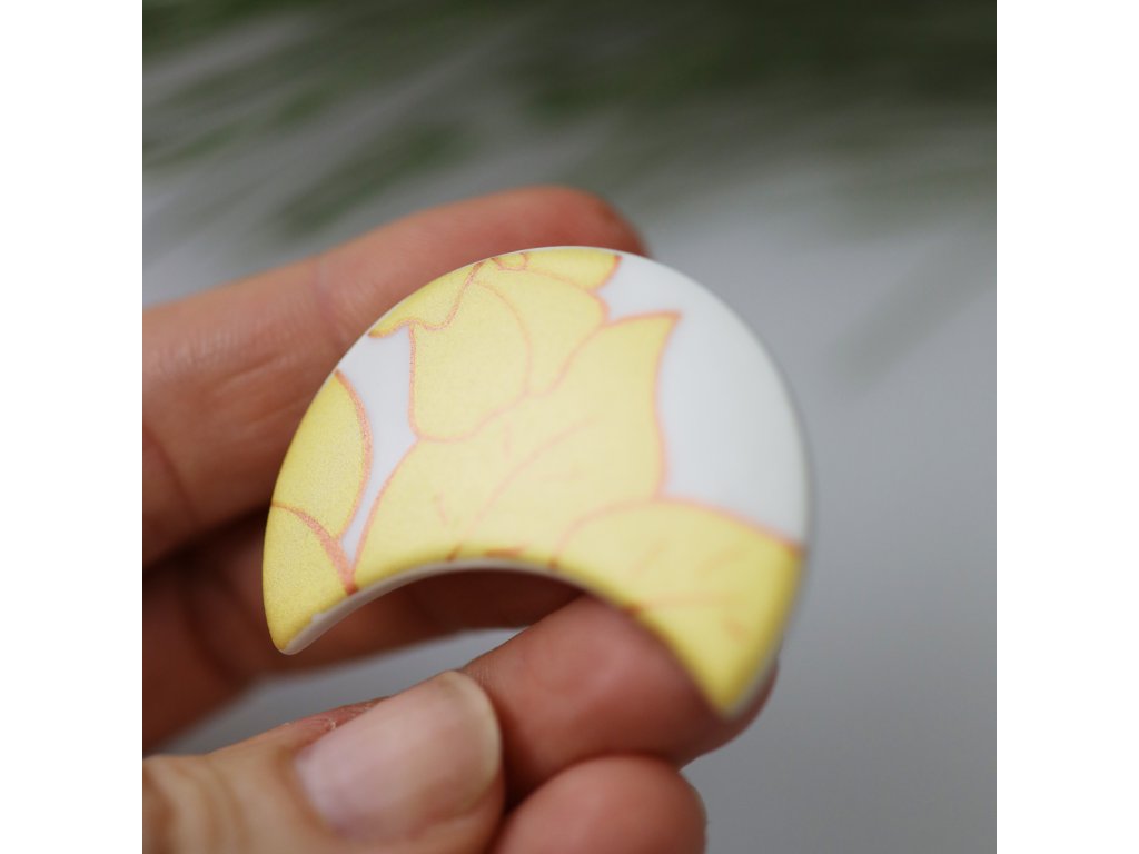 Originální porcelánová brož osvěží a rozjasní Váš outfit přesně tak, jak si budete přát. Hrajte si s barvami. Skvěle může vypadat na béžové, hnědé, ale i černé nebo červené! Zajímavý kousek uplatníte na šále i na čepici, na kabátku i na šatech. .