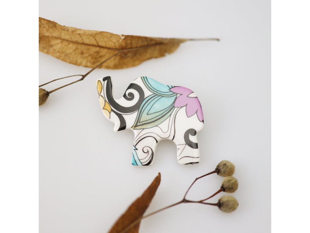 Originální porcelánová brož slon - symbol štěstí, moudrosti, zkušenosti, ale také loajality, společenství a jednoty.