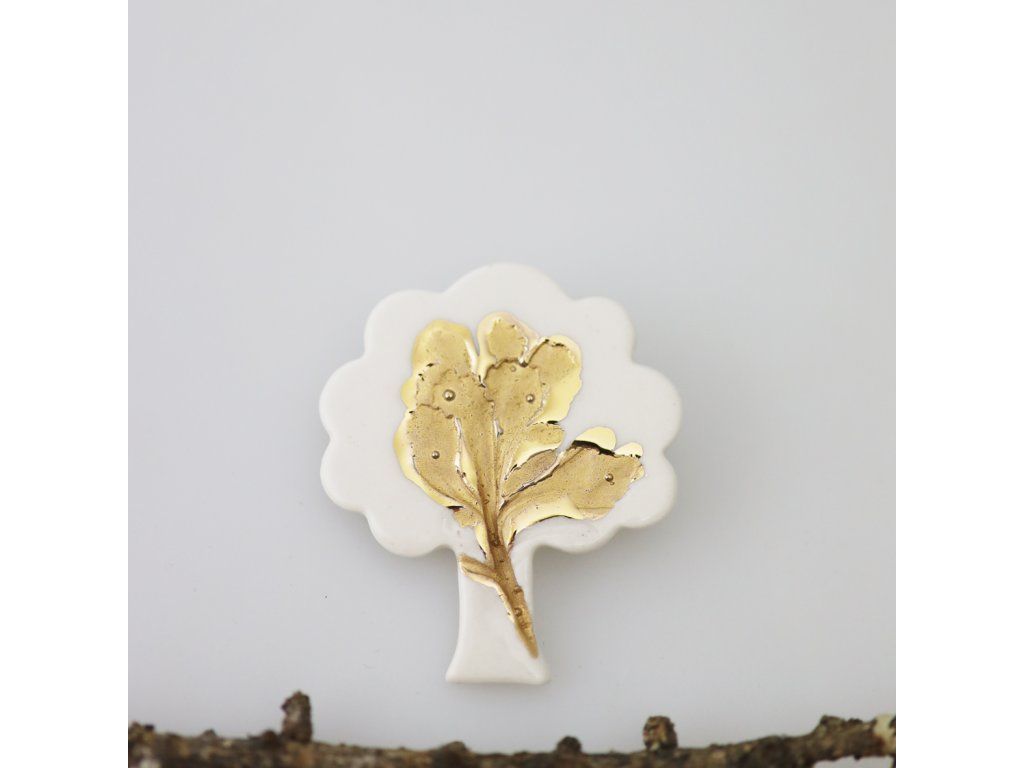 Výjimečná porcelánová brož Strom v elegantním bílo-zlatém provedení dovede k dokonalosti Váš outfit. Sako, šaty nebo halenka nabydou styl, kterému nelze odolat. Pokud milujete stromy, přírodu a krajinu, zamilujete si brož i pro její myšlenku. Umělecké provedení dává šperku unikátní nádech. Reliéf plný zlata vyzařuje pozitivní energii Slunce.