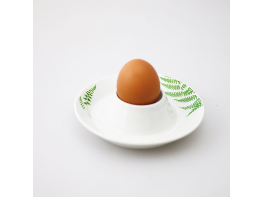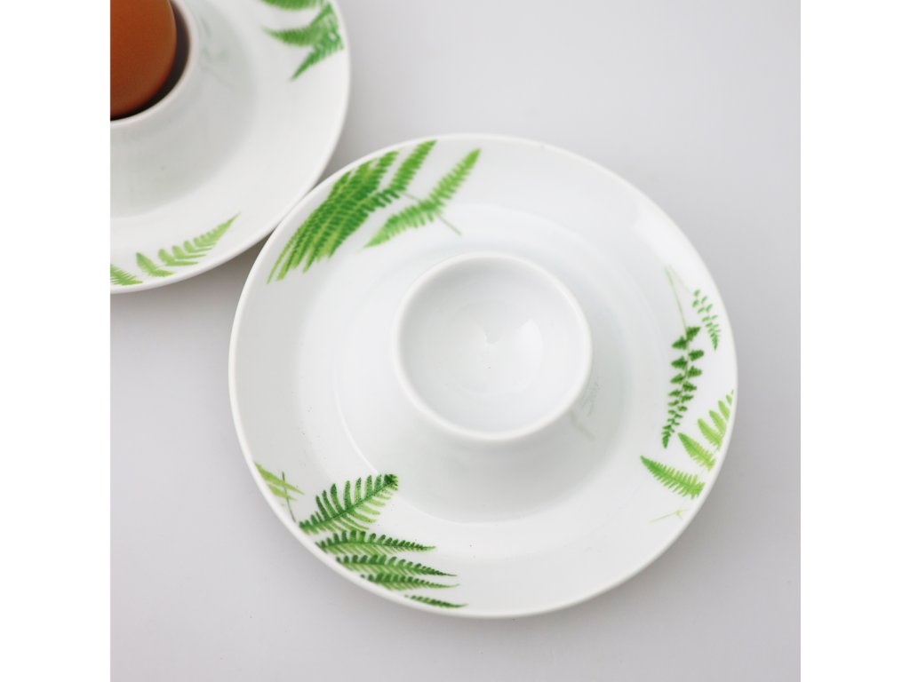 Kalíšek na vajíčko z nejkvalitnějšího porcelánu se svěžím dekorem Kapradí přinese vašemu stolování pozitivní náladu. Dekor inspirovaný naší přírodou potěší a vnese špetku poezie i do zdánlivě všedních chvil.