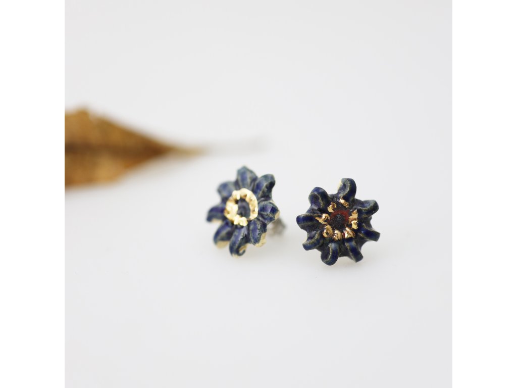 Ručně vyrobené, keramické náušničky s detailem pravého zlata.
