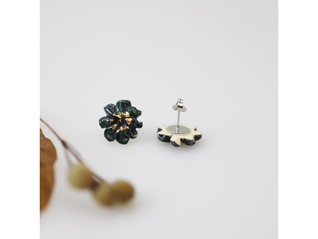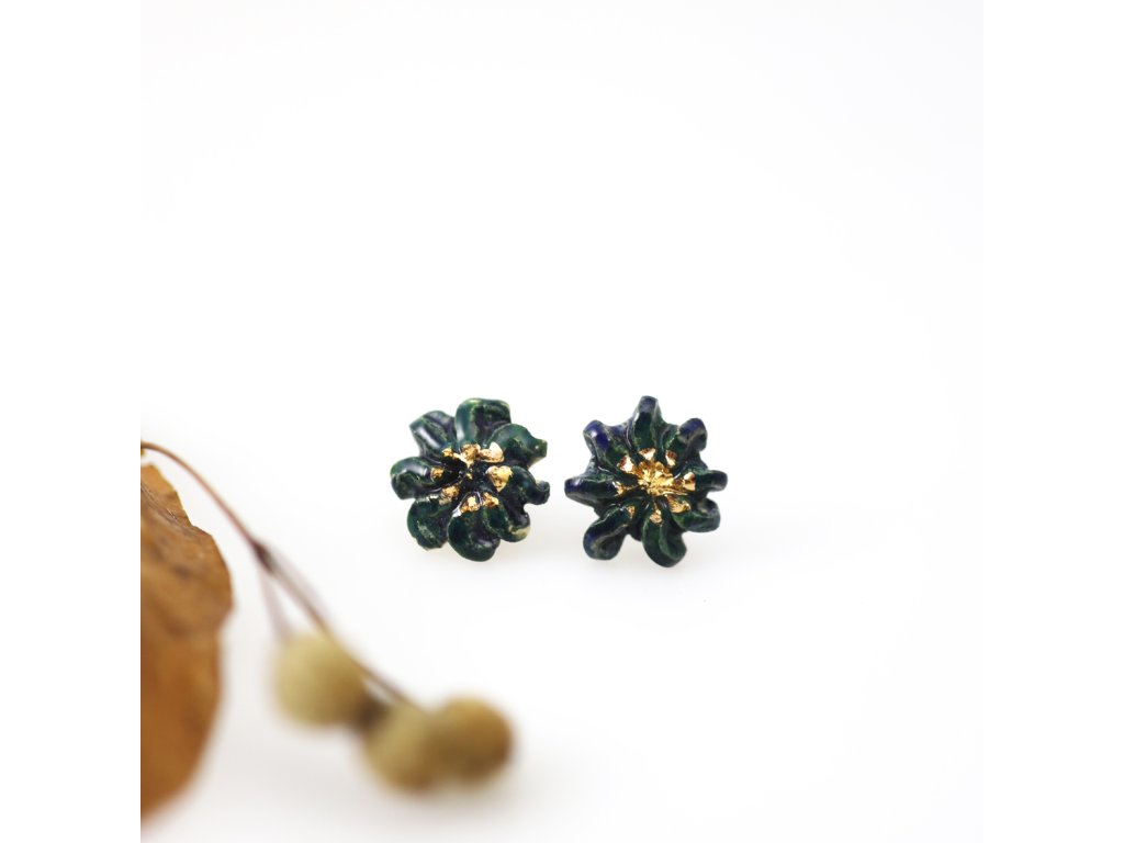 Ručně vyrobené, keramické náušničky s detailem pravého zlata.
