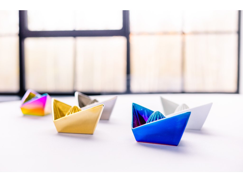 "Loďka je symbolem pro cestování. Nicméně velice často ukazuje i na úspěšné obchody, především s cizinou. Pro šťastnou plavbu s čerstvou šťávou pro vás mám tento lis na citrony. Pro jeho tvarosloví mi byla inspirací papírová lodička," uvádí autorka MgA. Lenka Sárová Malíská.