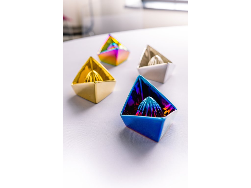 Krásný, plně funkční lis na citrusy z prvotřídního porcelánu se může stát designovým doplňkem domácnosti i originálním dárkem. V letních dnech s Loďkou zabodujete při přípravě drinků, ale i čisté vody s ledem a citronem (limetkou). V chladnějších obdobích zpříjemní přípravu čajů a dalších nápojů, které zahřejí a dodají energii. Zlatý odlesk umocňuje tento skvost, který má sílu Slunce a poezii jako z pohádky...