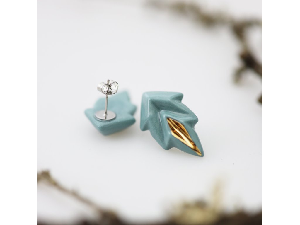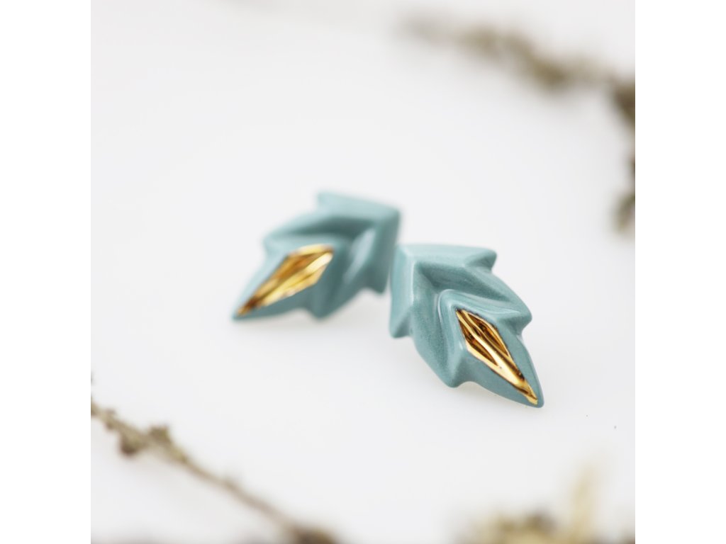Elegance, originalita a smyslná krása - to jsou porcelánové náušnice MyOrigami v petrolejové se zlatým detailem.