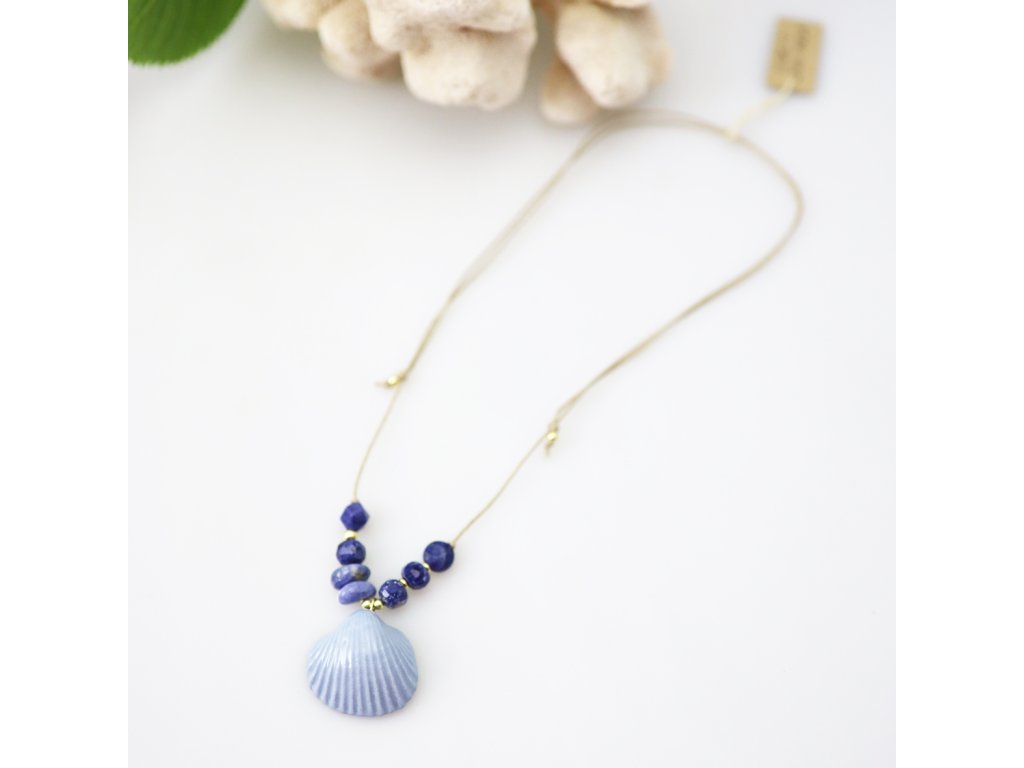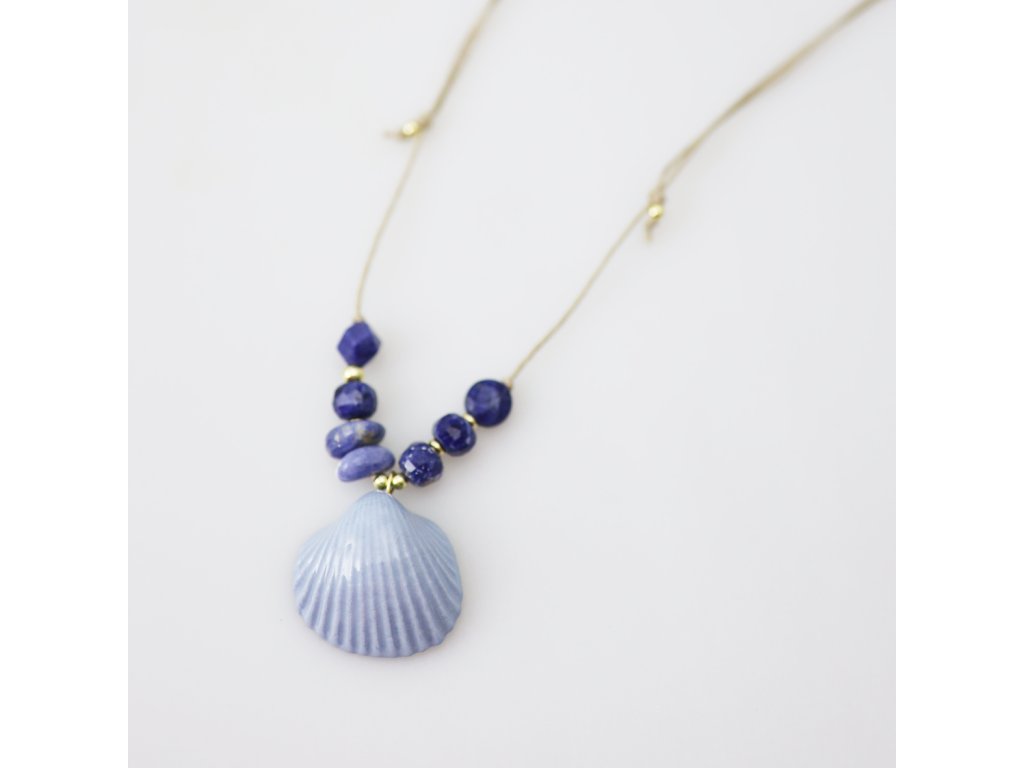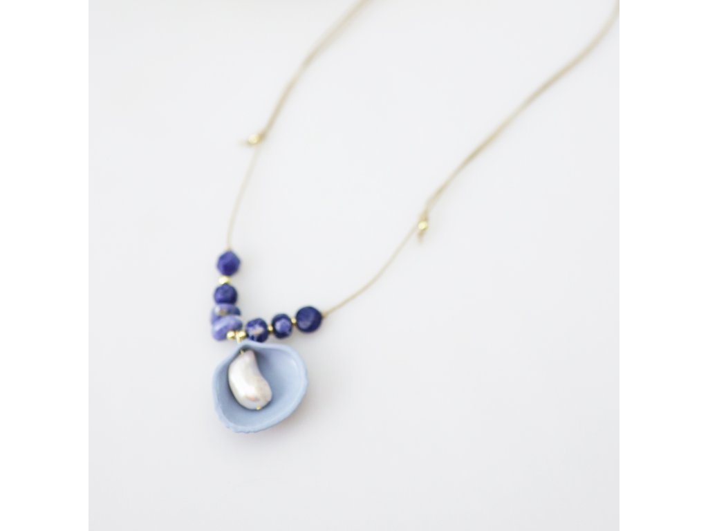 Pohádkově krásný, unikátní náhrdelník s úžasnou porcelánovou mušlí v modré byl vyroben jen jednou. Budete Vy jeho šťastnou nositelkou? Fascinující spojení porcelánu, sodalitu, perly a zlacených komponentů navozuje až snovou atmosféru. Je v něm příběh o čisté lásce, nebi plném hvězd, o mořích a třeba i o paláci, ze kterého až přechází zrak.... Lehký náhrdelník s pozitivním nábojem zdůrazní Vaši krásu a osobnost. Mějte ráda sebe i svůj styl!