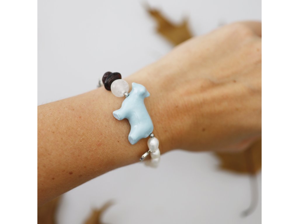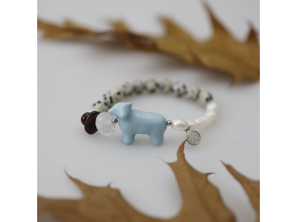 Beránek boží, který snímá hříchy světa přináší mír, klid a lásku... Již ikonická porcelánová ovečka od Studia Malíská v barvě jasného nebe tvoří spolu s minerály nadčasově krásný náramek. Nápaditost a jemné poselství potěší každého z nás. Unikátní náramek plný harmonie a originality patří k neopakovatelným šperkům, které zkrášlí Vaše zápěstí a potěší při každém pohledu.
