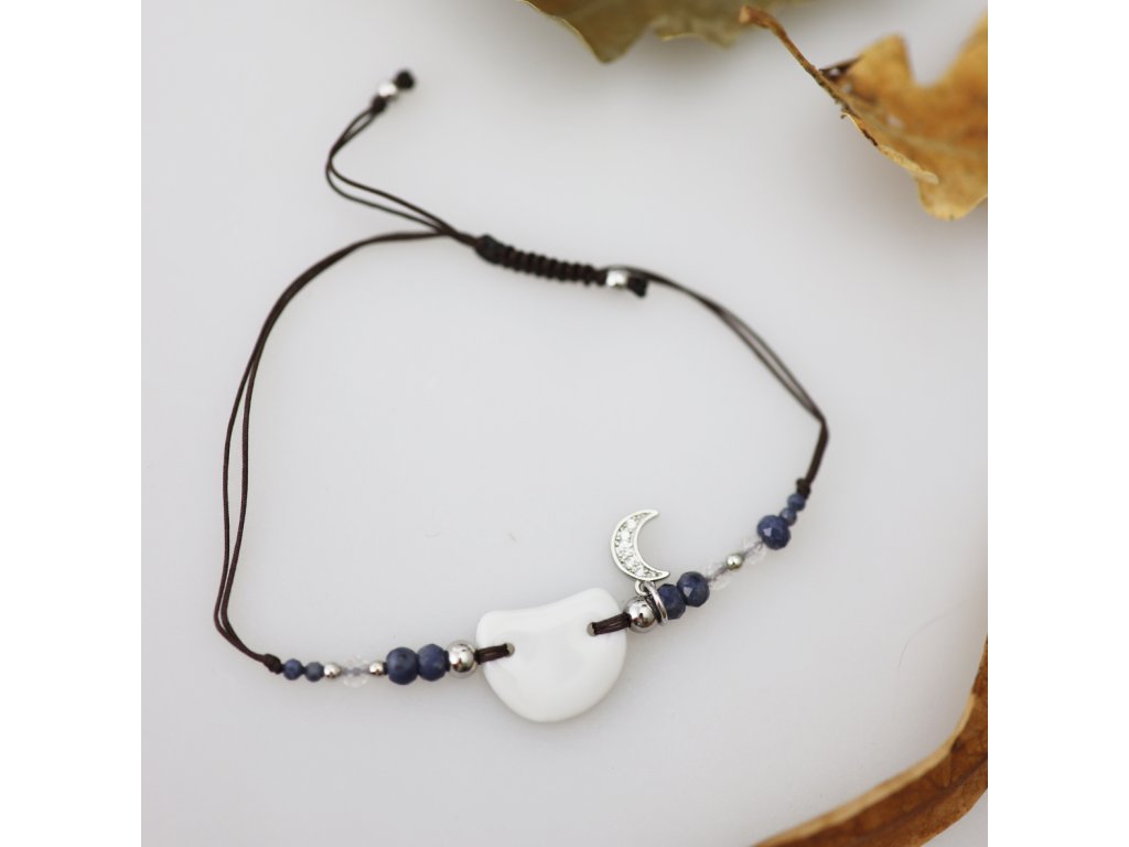 Tento originální náramek, který spojuje krásu porcelánu a minerálů, patří k těm snovým kouskům, které probouzejí fantazii. Pohádka o hvězdách, měsíci, lásce a čisté kráse... Toto jemné dílko se vám bude příjemně nosit (má nastavitelnou velikost) a nepřestane okouzlovat. Může se stát i krásným dárkem blízké osobě.