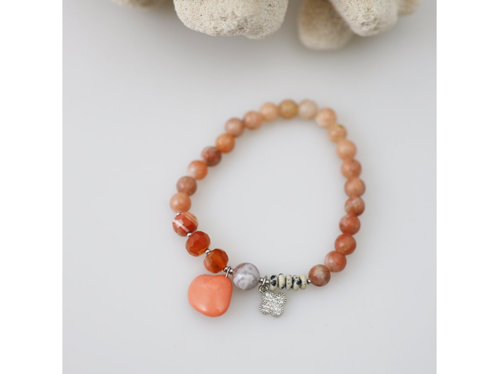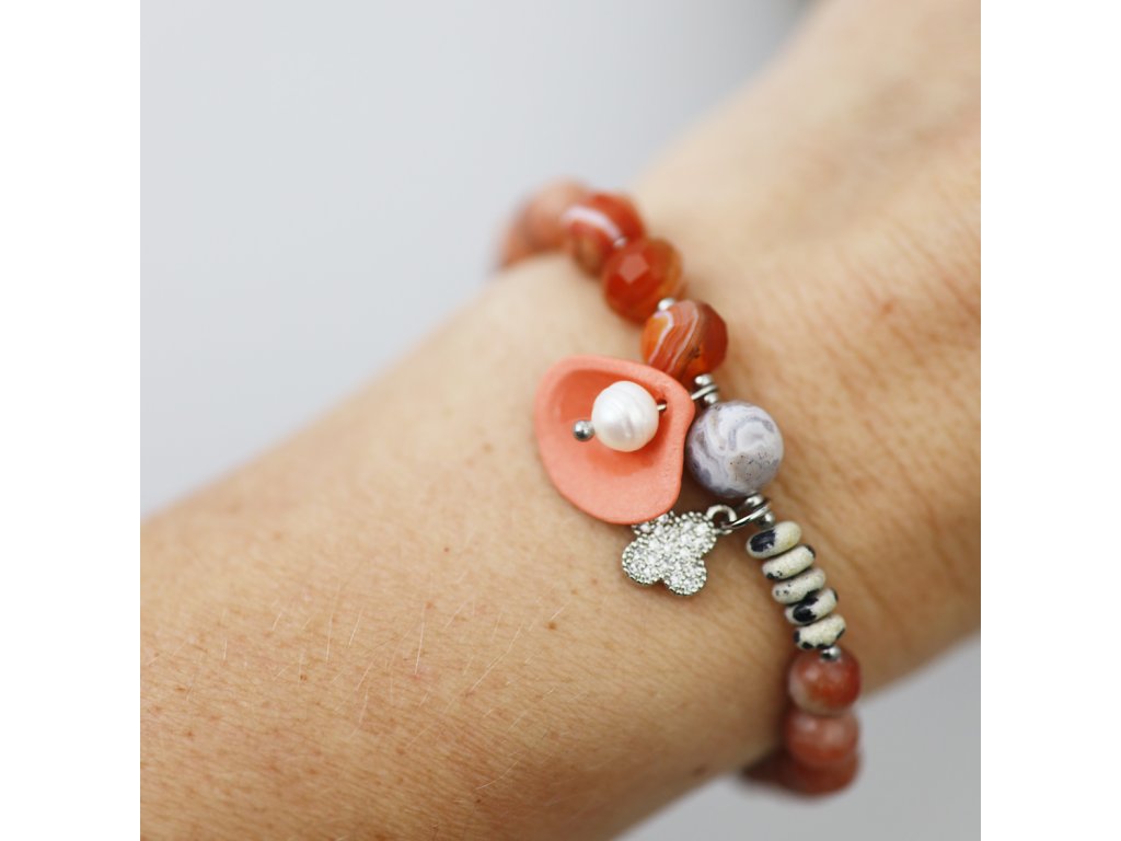 Fascinující, nepřehlédnutelný náramek z minerálů a korálové porcelánové mušličky, která skrývá i odkrývá bělostnou přírodní perlu... Spojení karlovarského porcelánu a minerálů se ukazuje být velmi šťastné. Tento unikátní, zcela originální náramek vznikl pouze jedenkrát. Nosit ho budete jen a jen Vy. Druhý stejný nepotkáte, ať už budete kdekoliv...