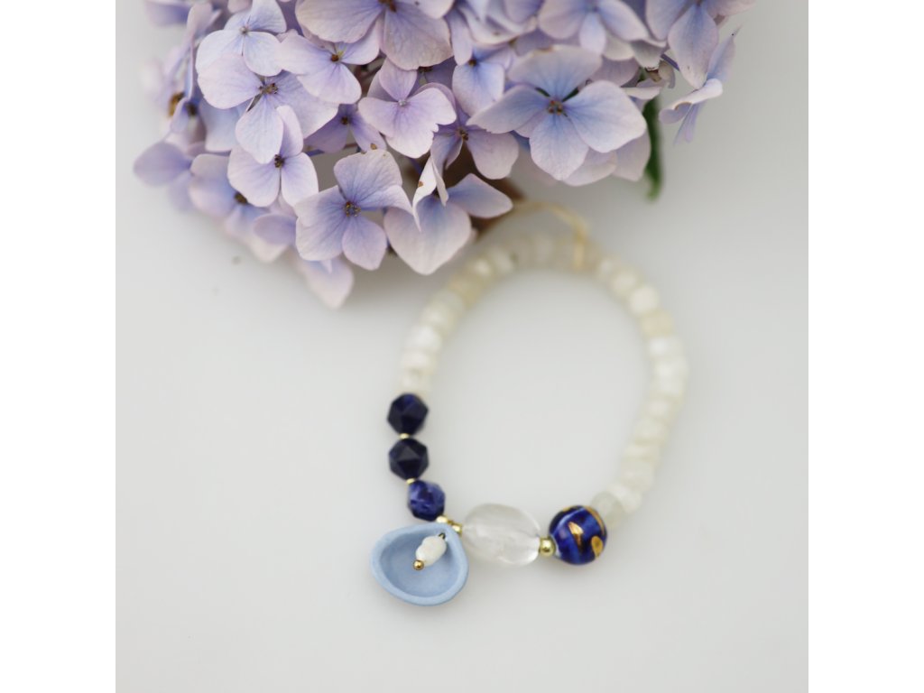 Materiál: karlovarský porcelán, měsíční kámen, sodalit, křišťál, říční perla