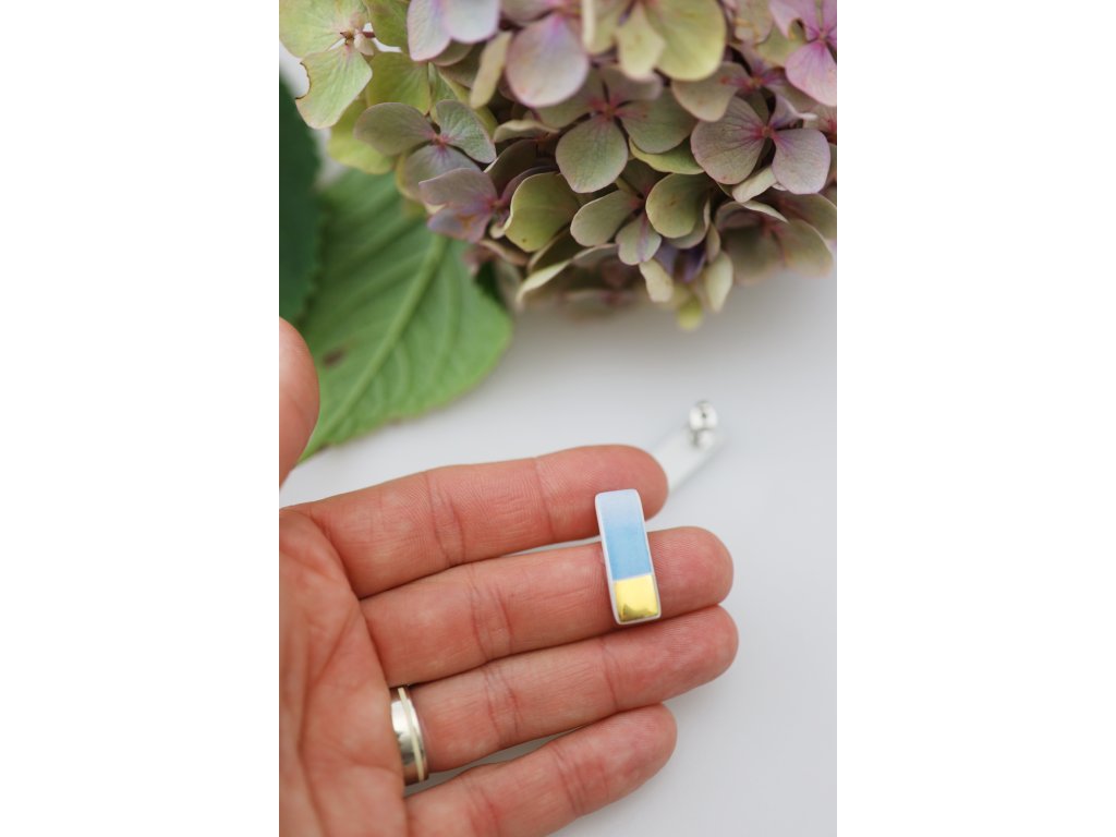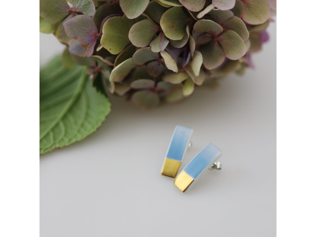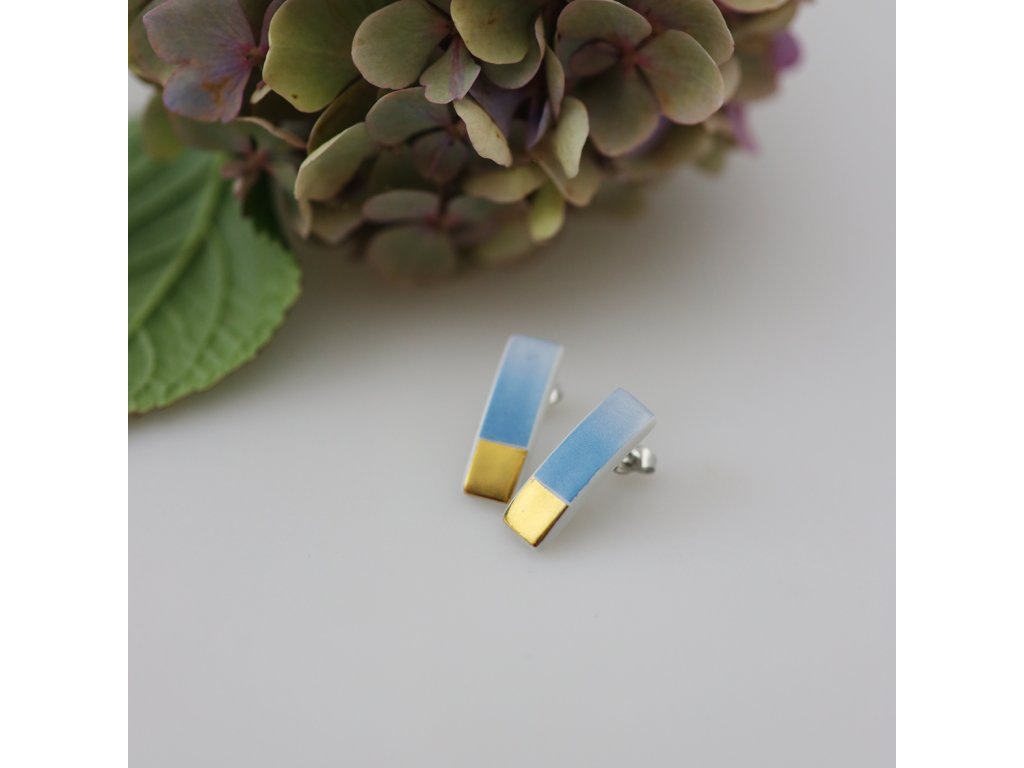 Překrásné originální porcelánové náušnice obdélníkového tvaru upoutají barevností. Kombinace modré se zlatou evokuje sluncem zalité nebe. Elegantní náušnice pro každodenní nošení uplatníte i při neformálních příležitostech, kdy se chcete blýsknout. Náušnice skvěle padnou a sluší!