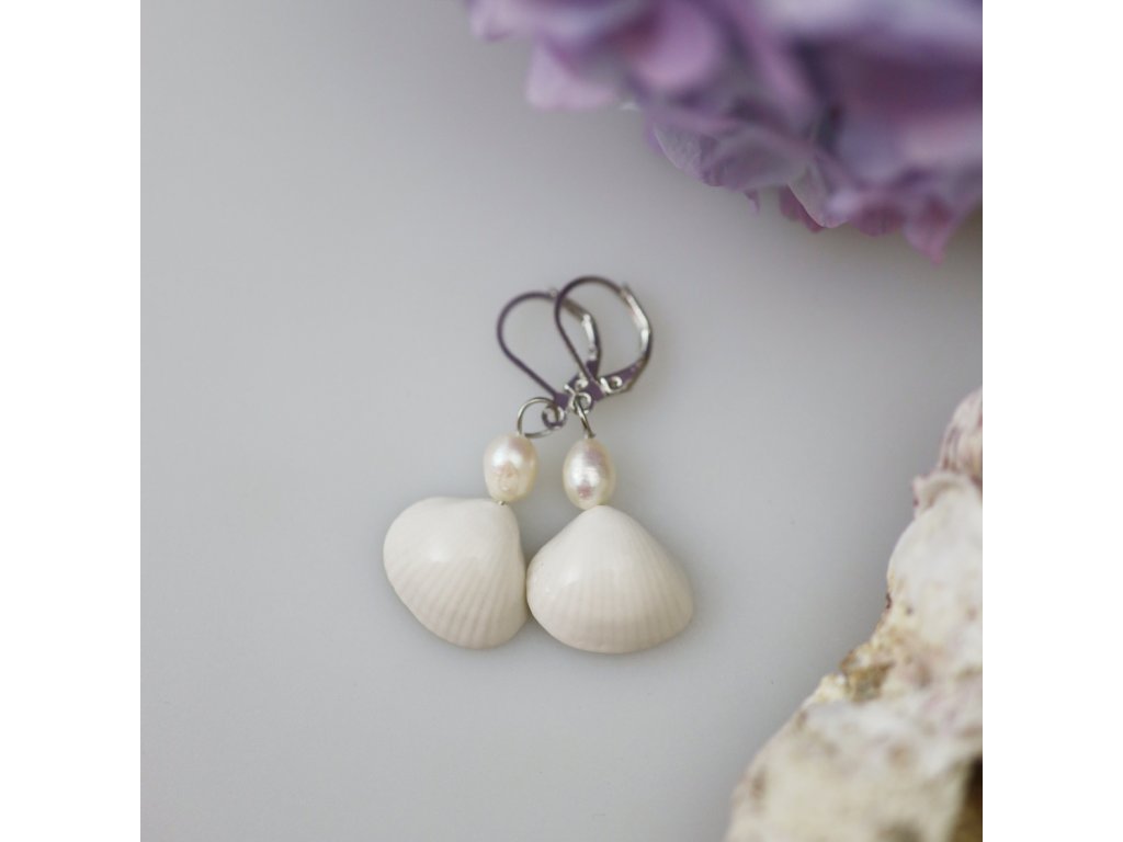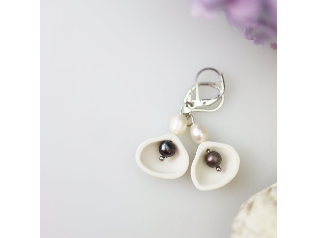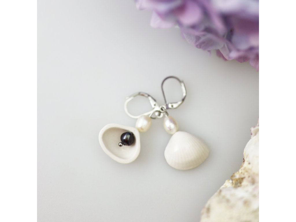 Poezií moří a jezer prodchnuté náušnice s bílou porcelánovou mušličkou podtrhnou Váš půvab. Hodit se Vám budou ke spoustě outfitů. Zdobí je bílá i tmavá perla, kterou mušlička rafinovaně skrývá i odhaluje. Harmonické, originální náušnice jsou elegantní i romantické, především však nápadité, a to se u šperků a doplňků velmi cení. Hodí se i jako dárek blízké osobě.