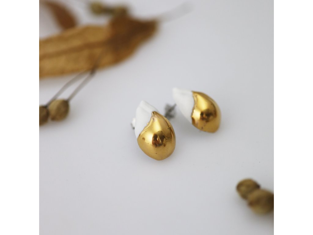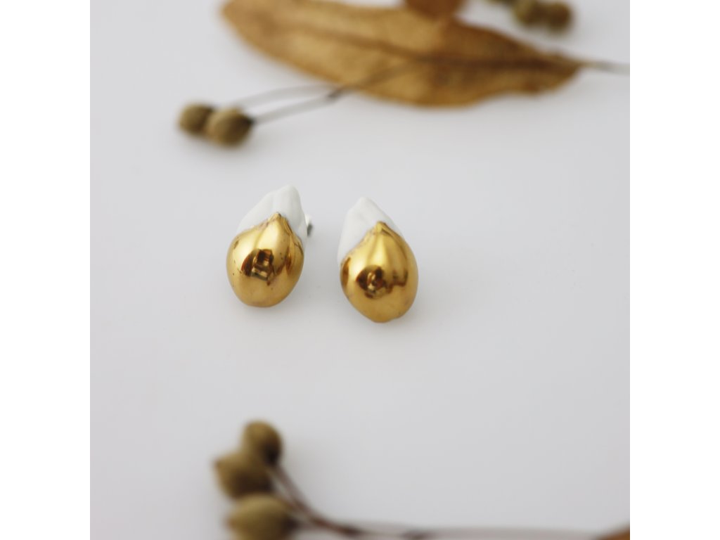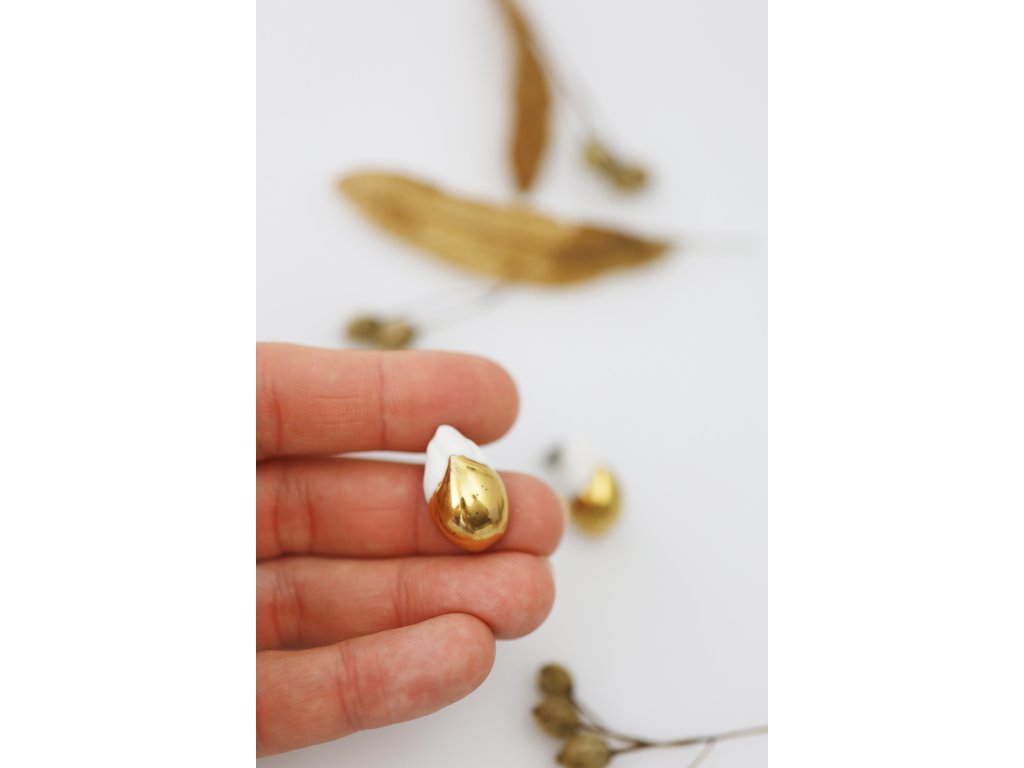 Celý šperk je ručně vyroben v limitovaném množství. Malován je pravým zlatem. Veškeré kovové komponenty jsou z hypoalergenní nerez oceli.