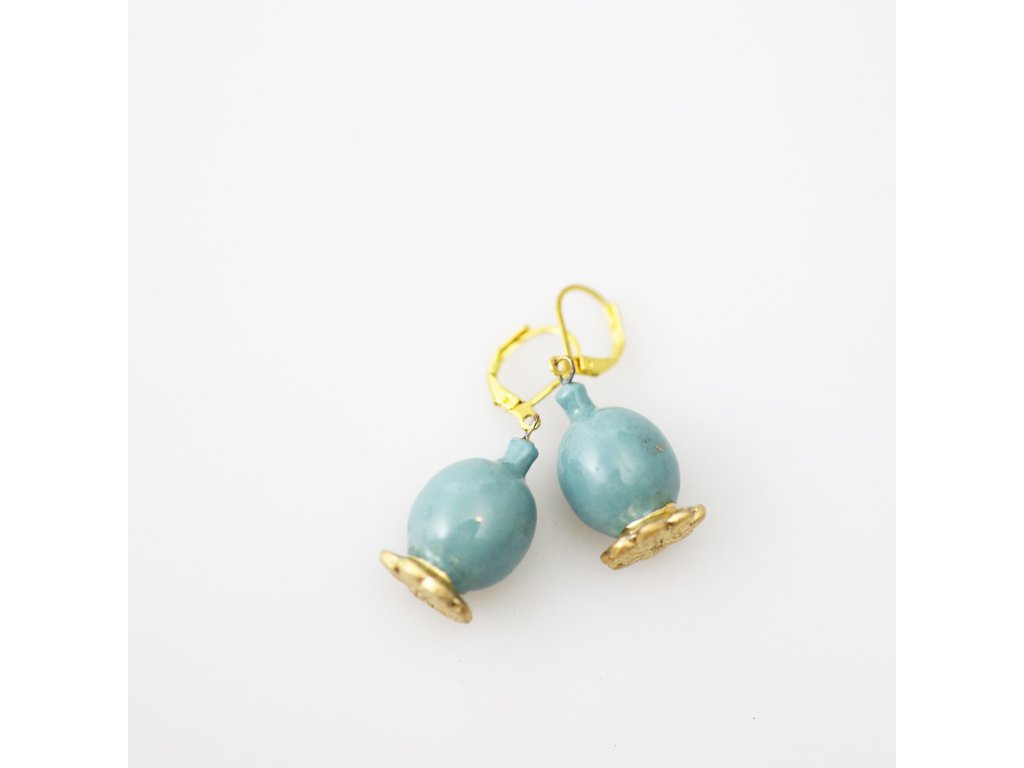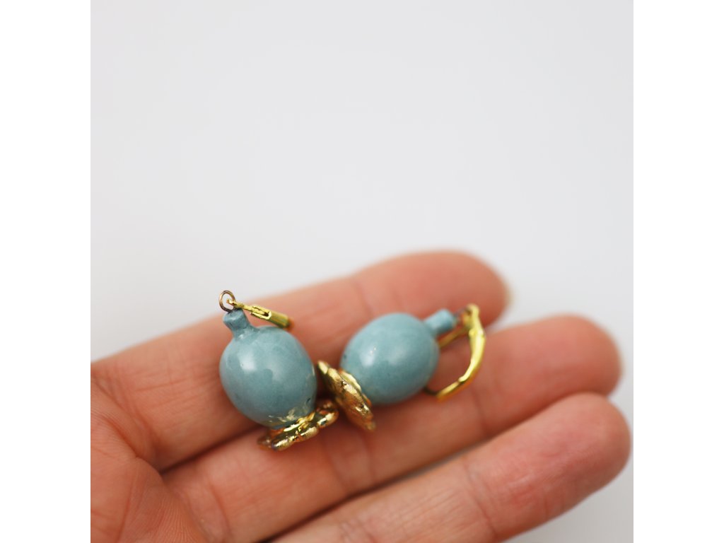 Porcelánové náušnice Makovička M, tyrkysové se zlatem