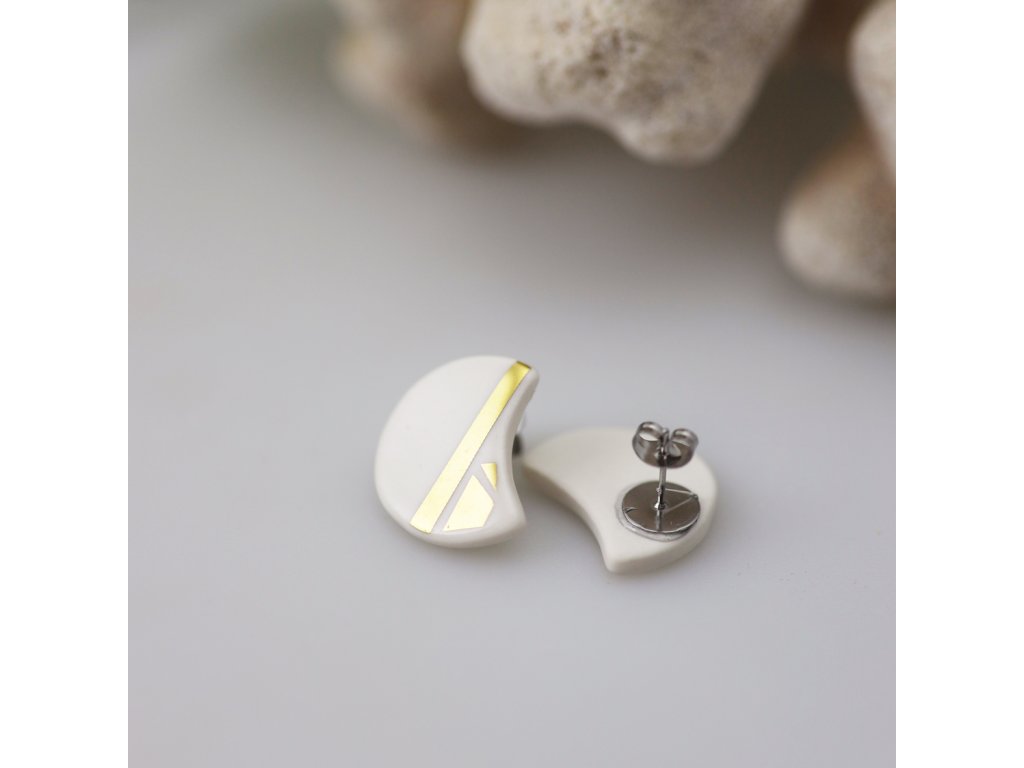 Elegantní, nadčasové a nápadité náušnice v se zajímavým zlatým dekorem na bílém podkladu fascinují při každém pohledu. Hodí se k celé řadě outfitů. Tyto originální porcelánové náušnice můžete rovněž kombinovat s řadou dalších šperků od Studia Malíská. Skvěle padnou, příjemně se nosí a po právu je lze řadit mezi "must have" kousky. Vypadají krásně, svěže a budou Vám slušet při řadě neformálních příležitostí i v pracovní den.