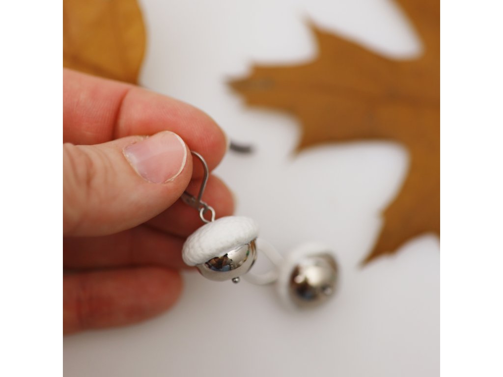 Originální porcelánové náušnice z kolekce Žaludy v platinové a bílé okouzlují fantazií pojící se s podzimní i zimní přírodou. Skvěle vás ozdobí a obohatí váš styl. Vnášejí do života umění nacházet krásu kolem sebe, vnímat půvab přírody a snít. Tyto jedinečné náušnice vhodné pro každý den se příjemně nosí, protože jsou duté (lehké). Buďte svá a originální! Každý kus byl ručně vyroben a zlacen.