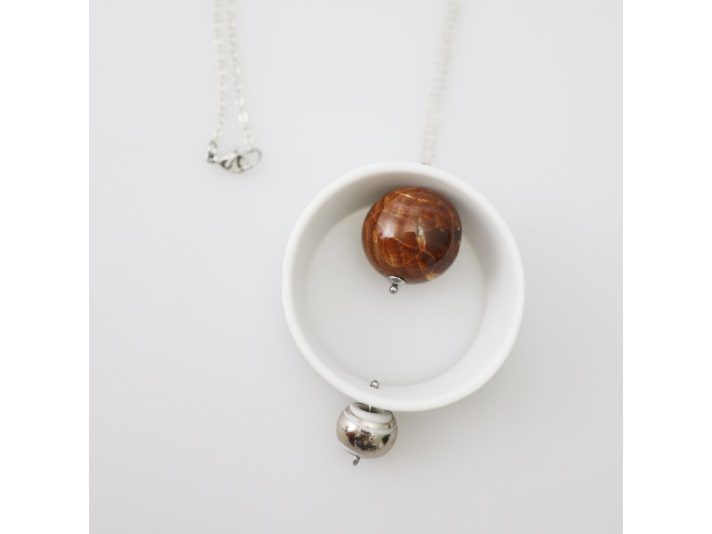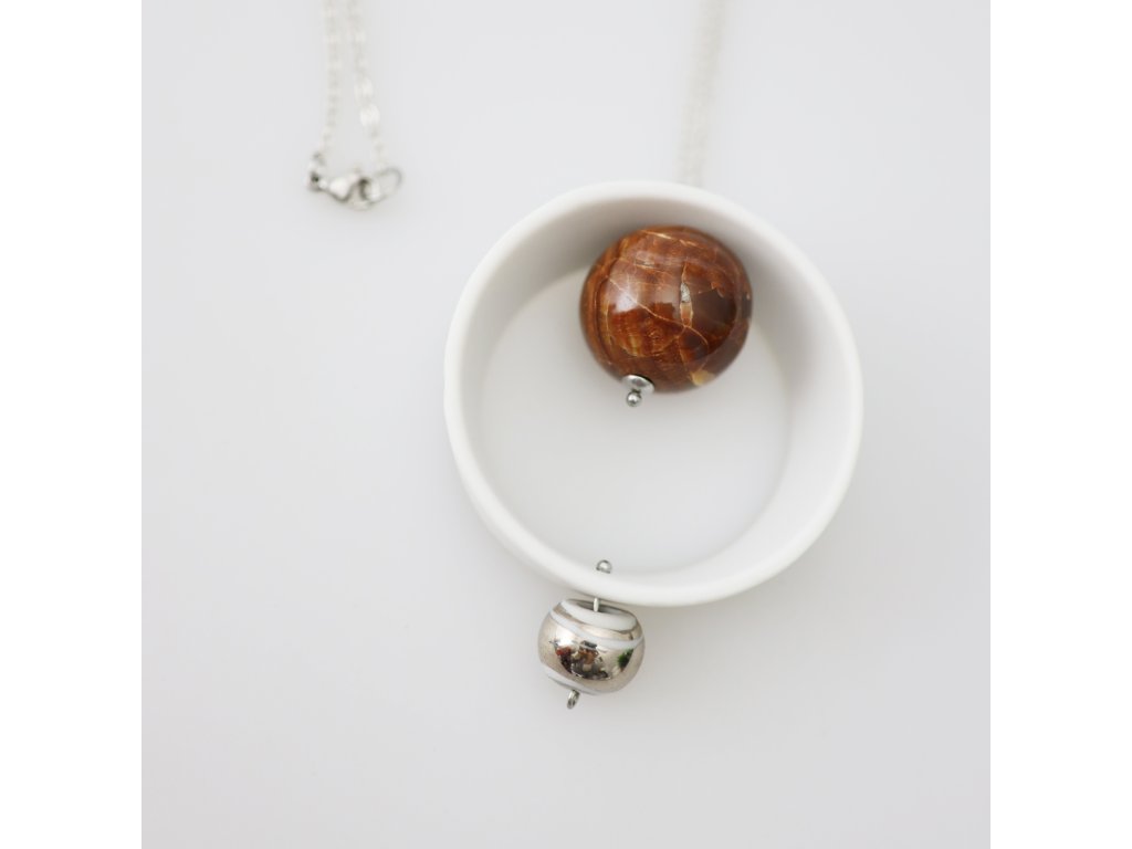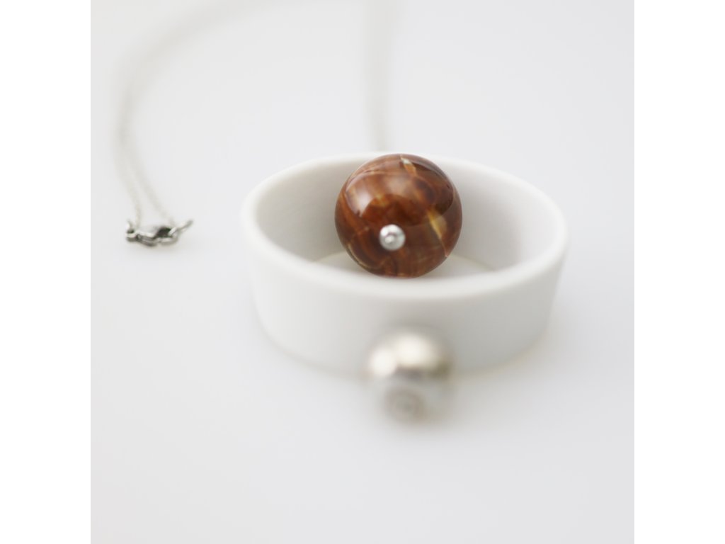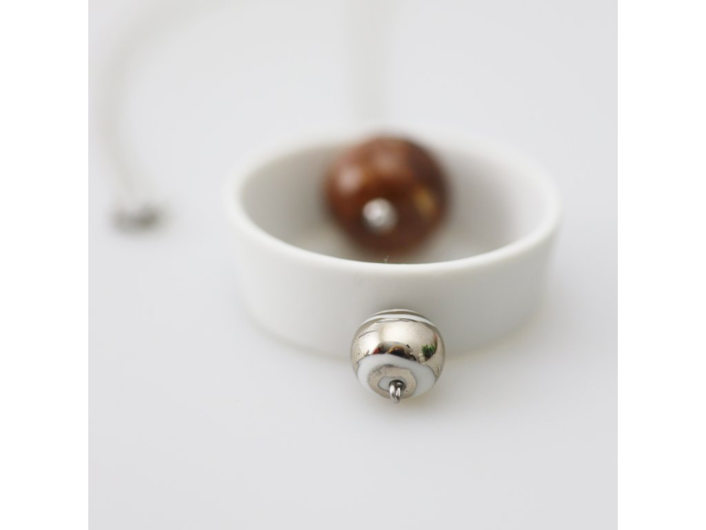 Jednoduchý, elegantní náhrdelník je naprostým originálem. Porcelánový korálek je ručně malován pravou platinou.