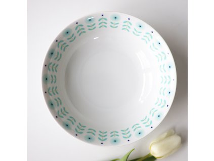 Krásná mísa z kvalitního a tvrdého porcelánu s nadčasově krásným dekorem působí velmi svěže a příjemně. Uplatnění ve Vaší domácnosti dozajista najde! Saláty všeho druhu se v ní budou vyjímat senzačně.