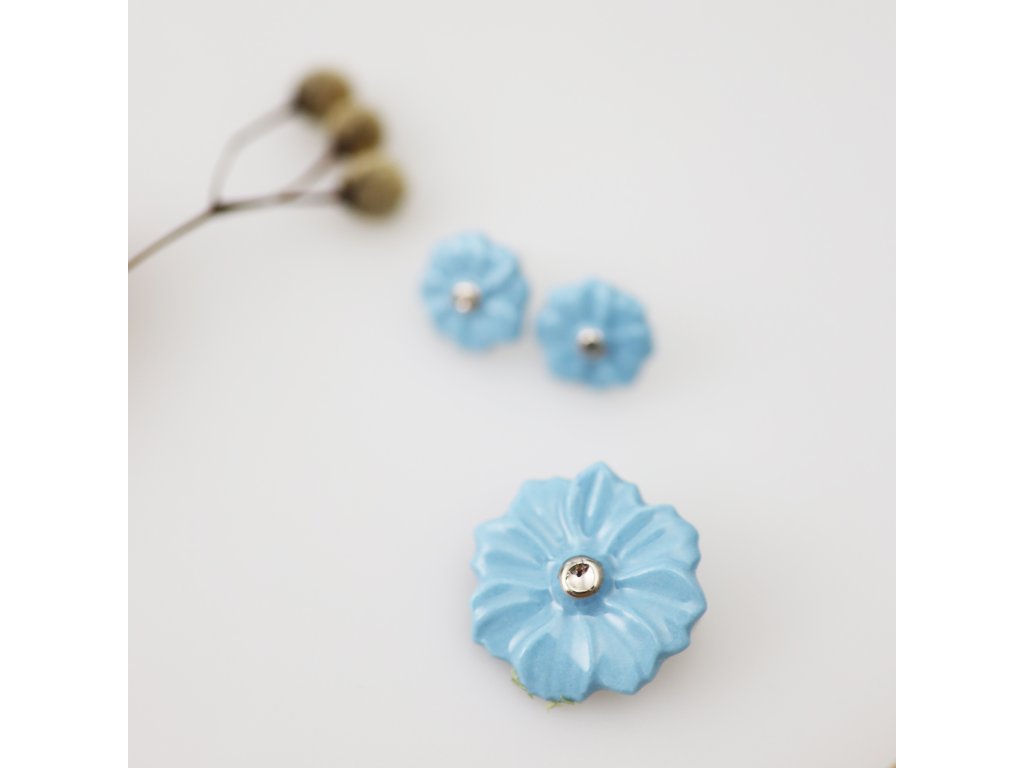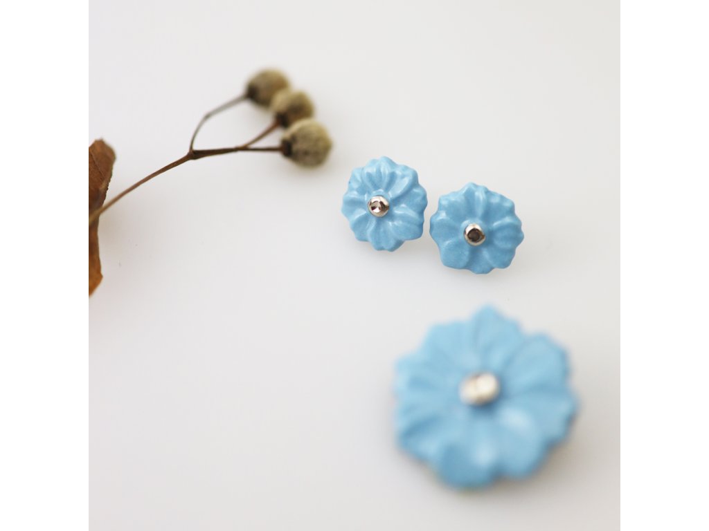 Brož kvítek o průměru 2,5 cm je stejně jako náušničky kompletně ručně vyroben.