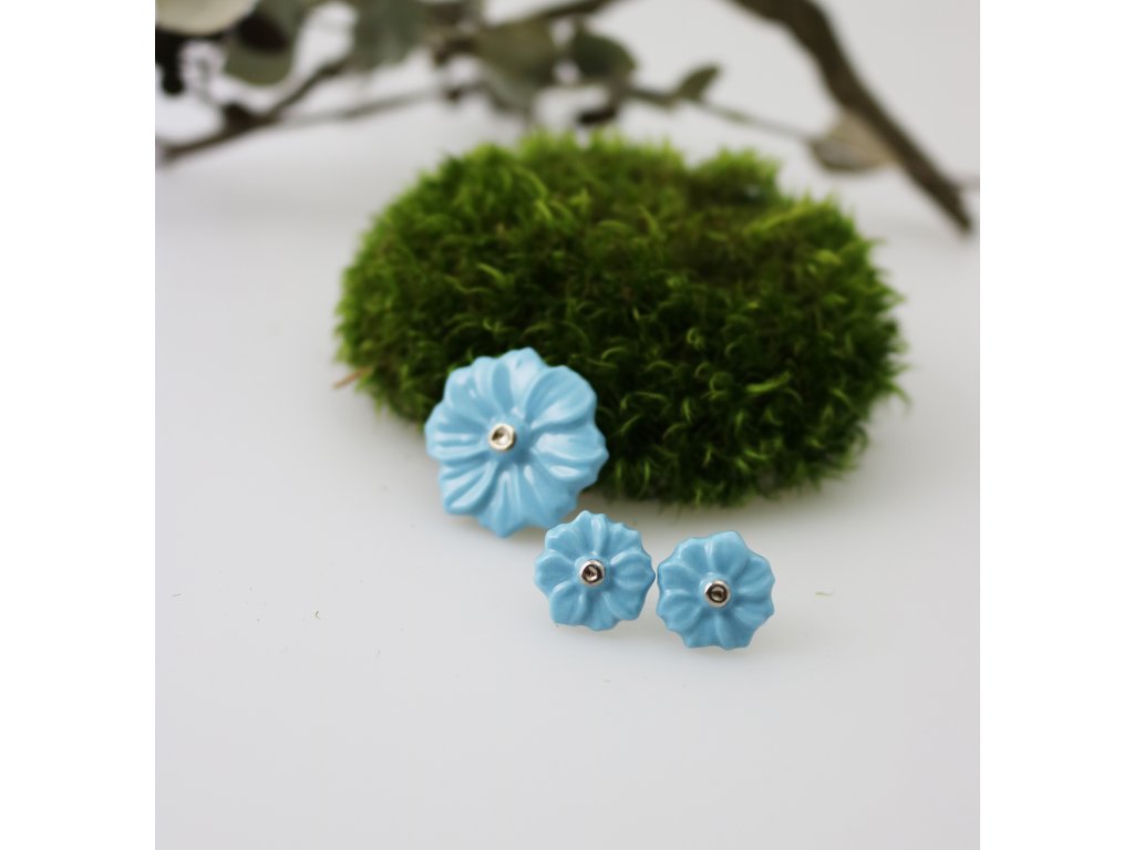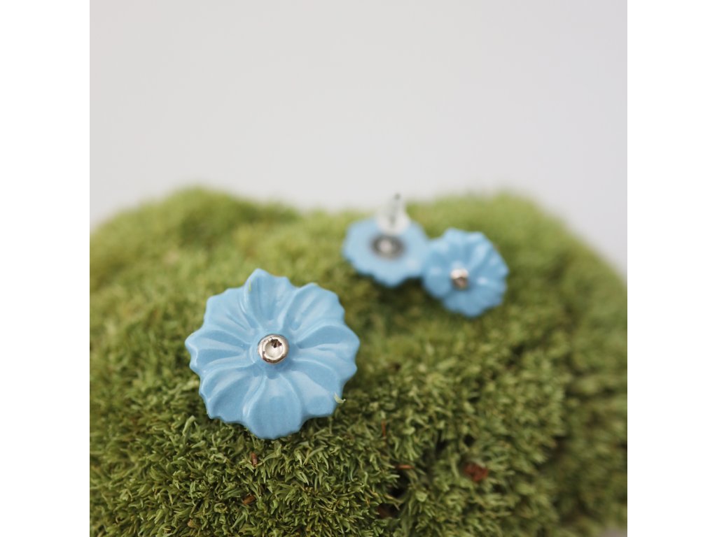 Porcelánové náušničky - kvítka. Originální ručně modelované, s ručně malovaným středem.