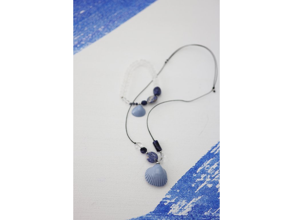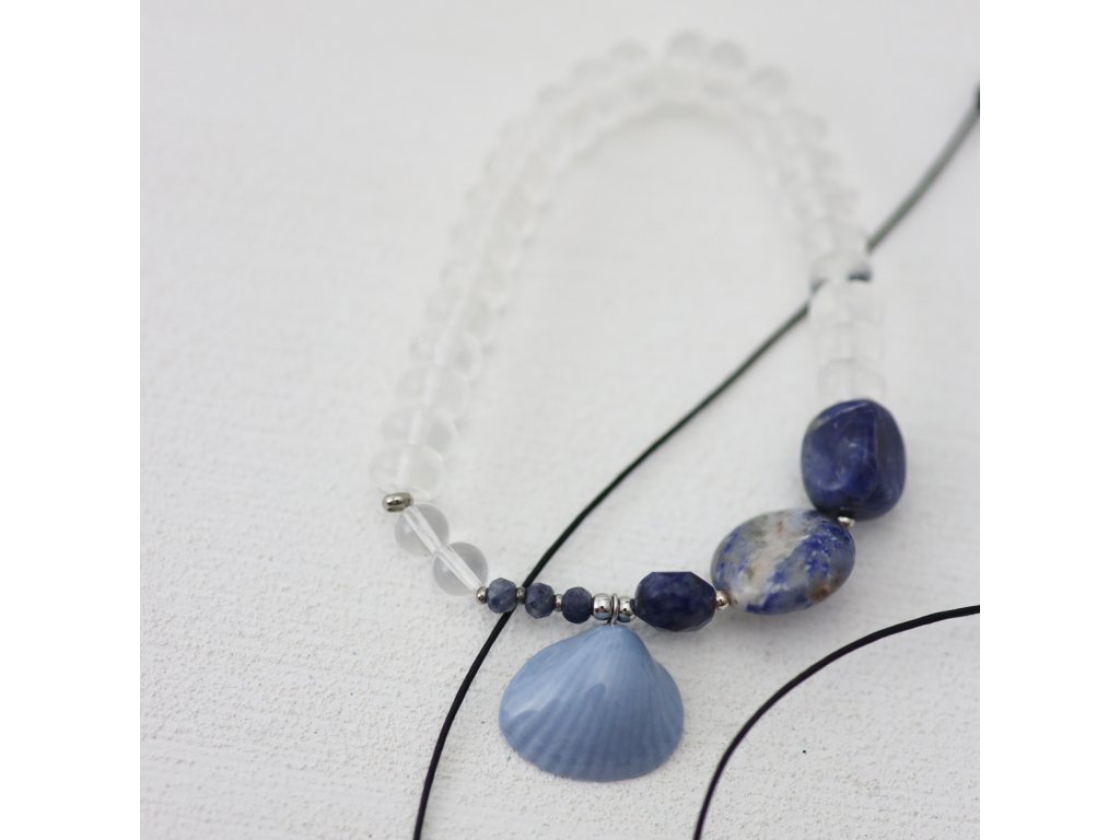 Set plný fantazie, neopakovatelné krásy okouzluje jako modrý sen či pohádka. Unikátní náramek a náhrdelník spojuje úchvatná porcelánová mušlička, kterou doplňují minerály ve výjimečné kompozici. Safír, sodalit a křišťál s porcelánovou mušličkou dokonale ladí. Svěží a povznášející elegance se dotkne Vašeho srdce. Dopřejte si tento nebesky krásný skvost. Může vás krášlit ve všední dny, ale též při neformálních společenských událostech.