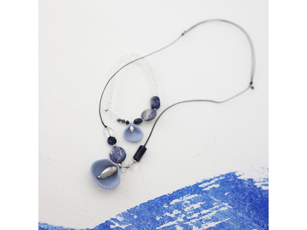 Materiál: karlovarský porcelán, říční perly, safír, sodalit, křišťál