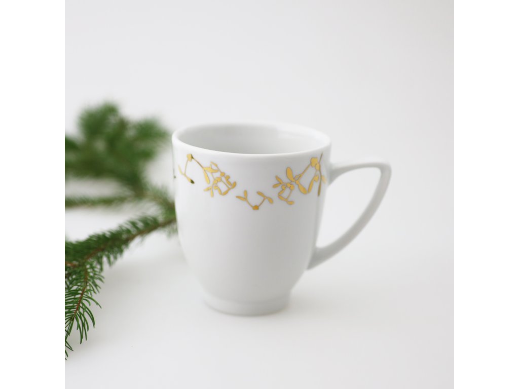 Oblíbený nápoj servírovaný v hrnku z nejkvalitnějšího českého porcelánu s překrásným dekorem zlatého jmelí dodá svátečním chvílím exkluzivní náladu. Věřte kouzlu originálně pojatých kousků pro sváteční dobu od Studia Malíská. Krásné Vánoce!