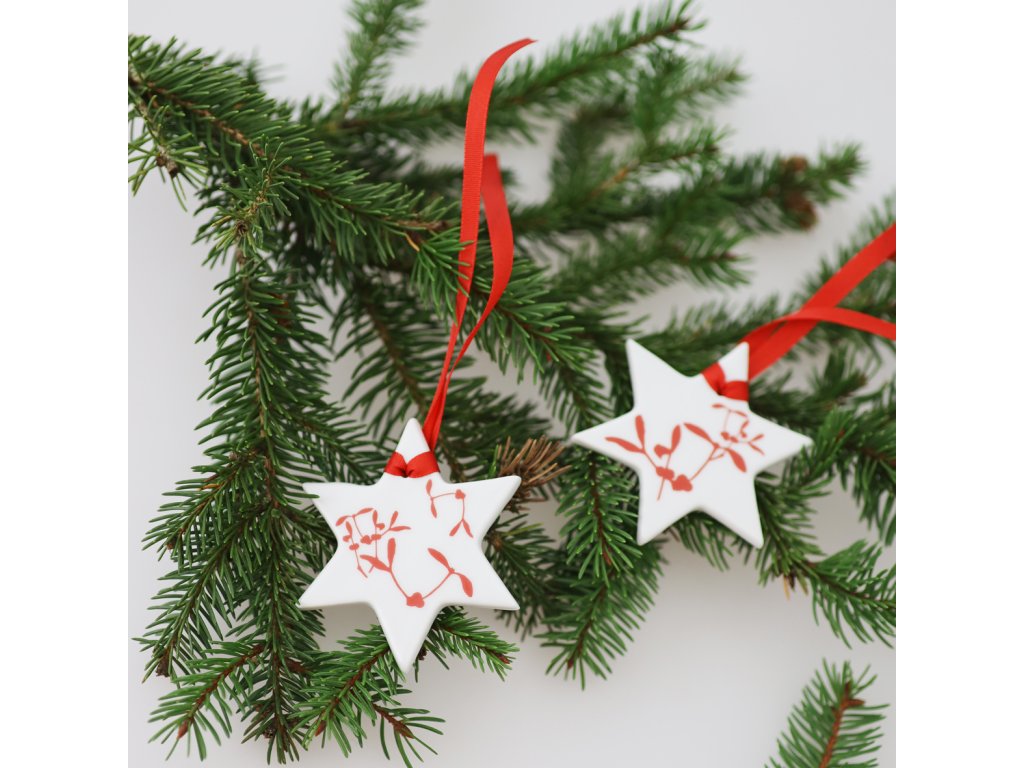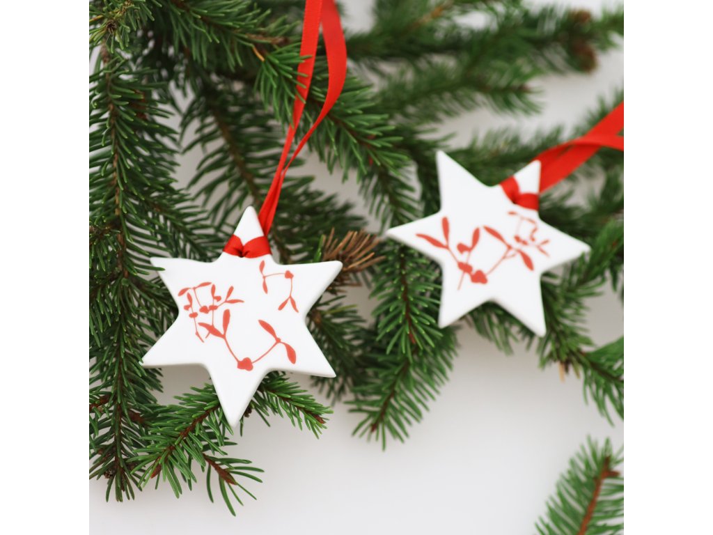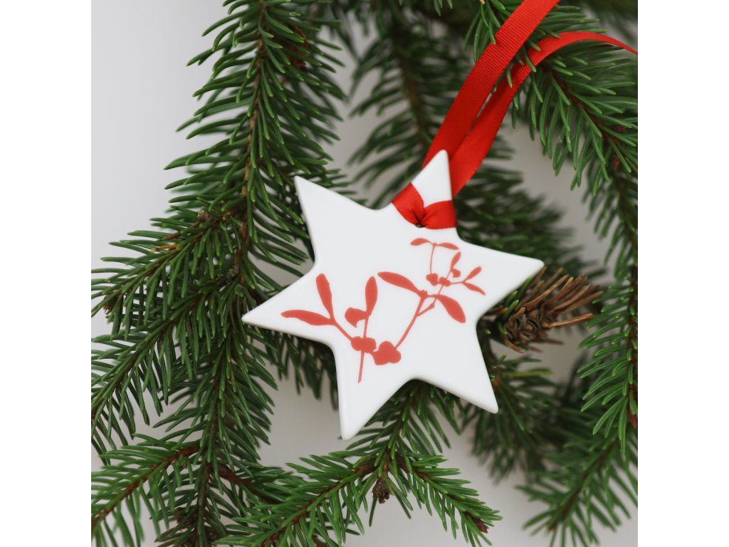 Stylová vánoční hvězdička z porcelánu může být jak samostatným doplňkem interiéru, tak překrásnou ozdobou vánočního stromku či aranžmá z větví jehličnanu ve váze. Jemná krása této originální ozdoby nese motiv jmelí, které - jak známo - přináší do domu štěstí, zdraví a hojnost.