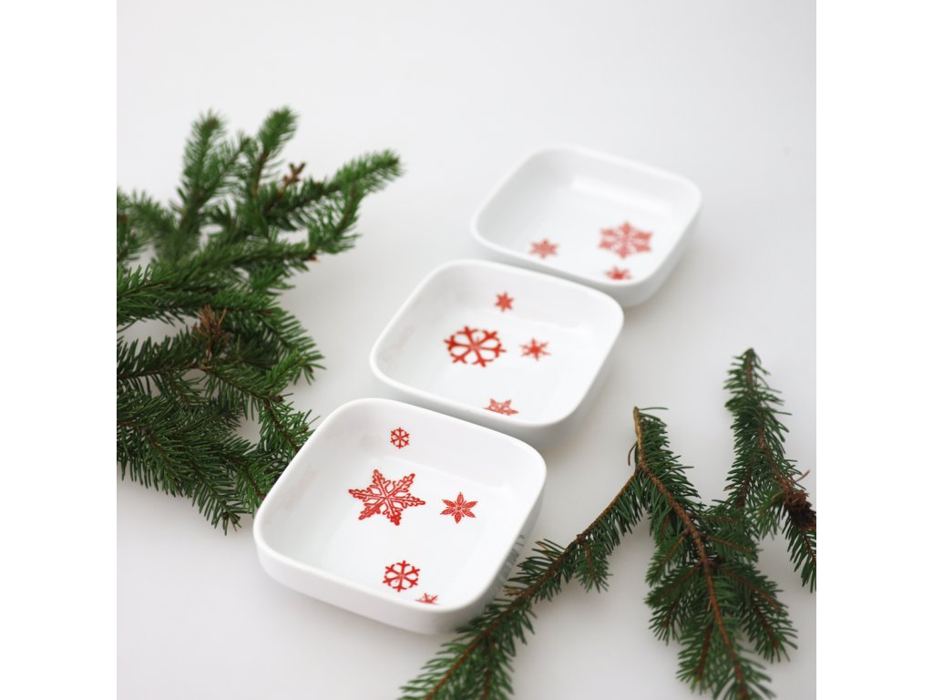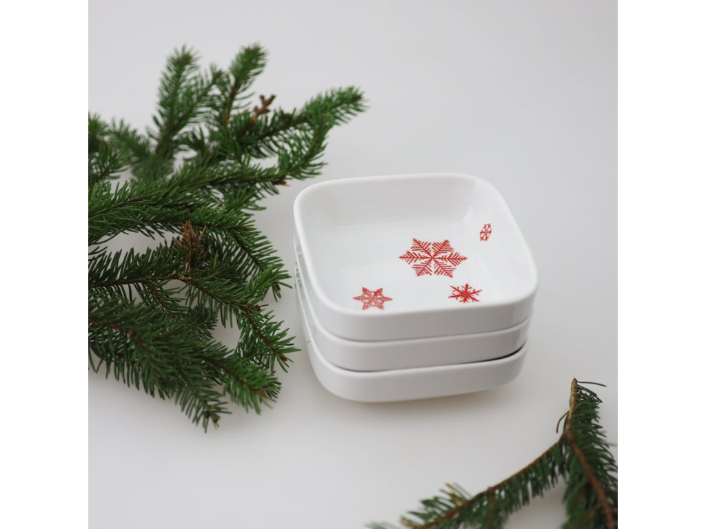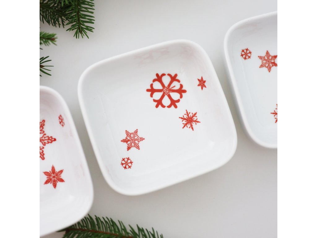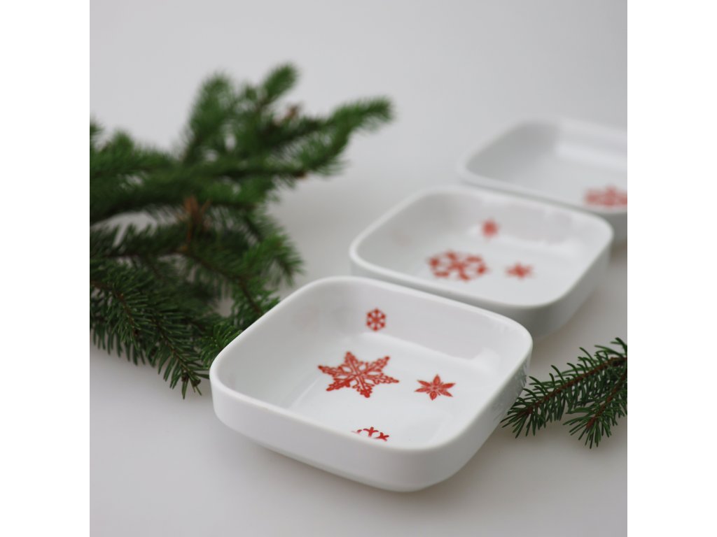 Zažijte kouzlo detailu a nápaditosti! Krásná miska z kvalitního českého porcelánu s poetickým dekorem červené vločky Vám dobře poslouží třeba k servírování oříšků, sušeného ovoce, kompotu anebo pudinku.