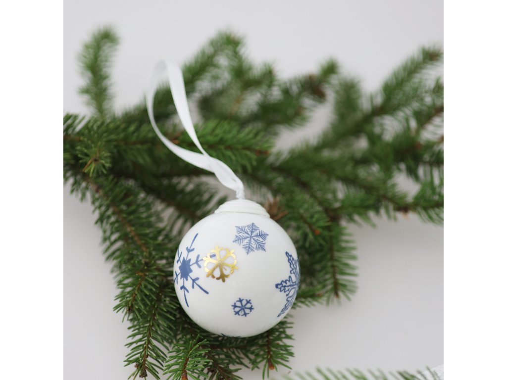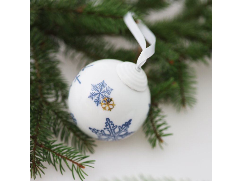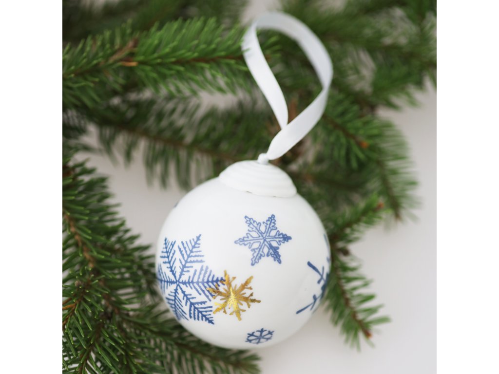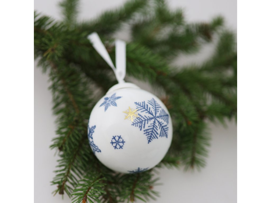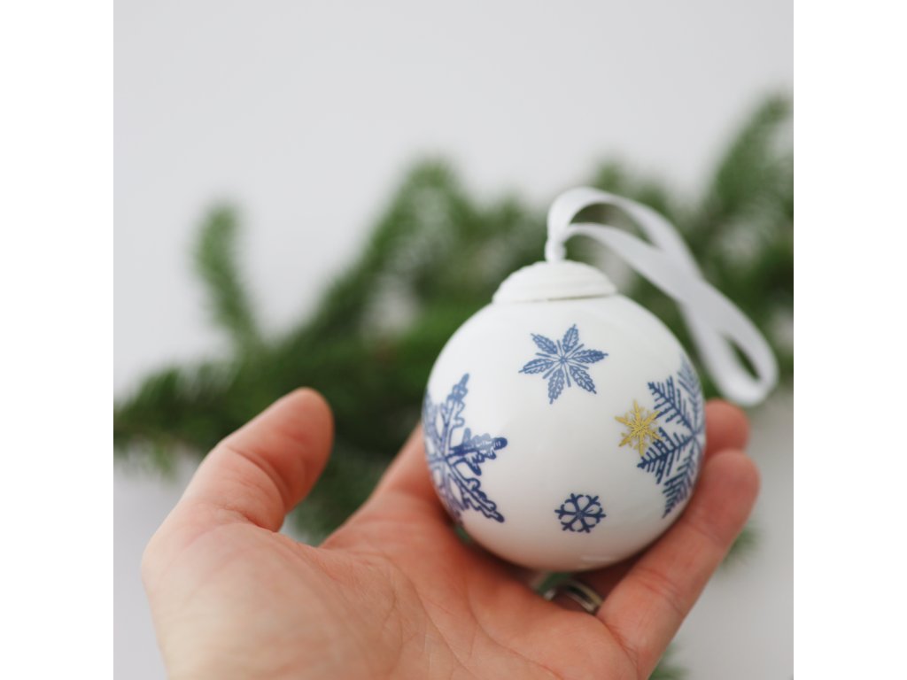 Dopřejte svému vánočnímu stromku nebo i chvojí ve váze styl! Porcelán, a to ten nejfajnovější, má neuvěřitelné kouzlo i tradici. Jemná krása a vkusnost porcelánové ozdoby ve tvaru koule s motivem temně modrých a zlatých sněhových vloček přikrášlí Váš stromek. Z ozdoby je cítit harmonie, čistota, klid a mír... Originální vánoční ozdobu můžete věnovat i coby dárek. V čase předvánočním i na Štědrý den!