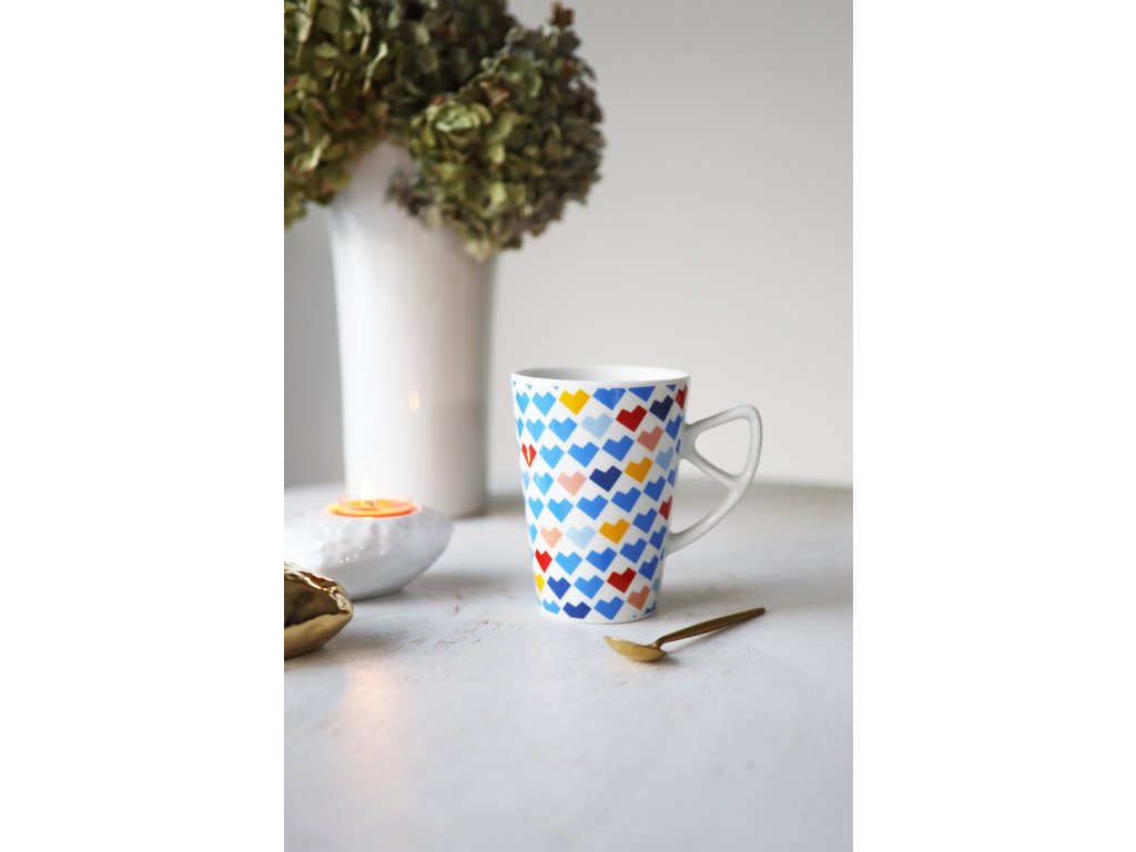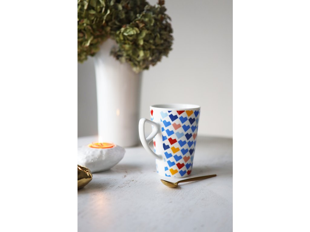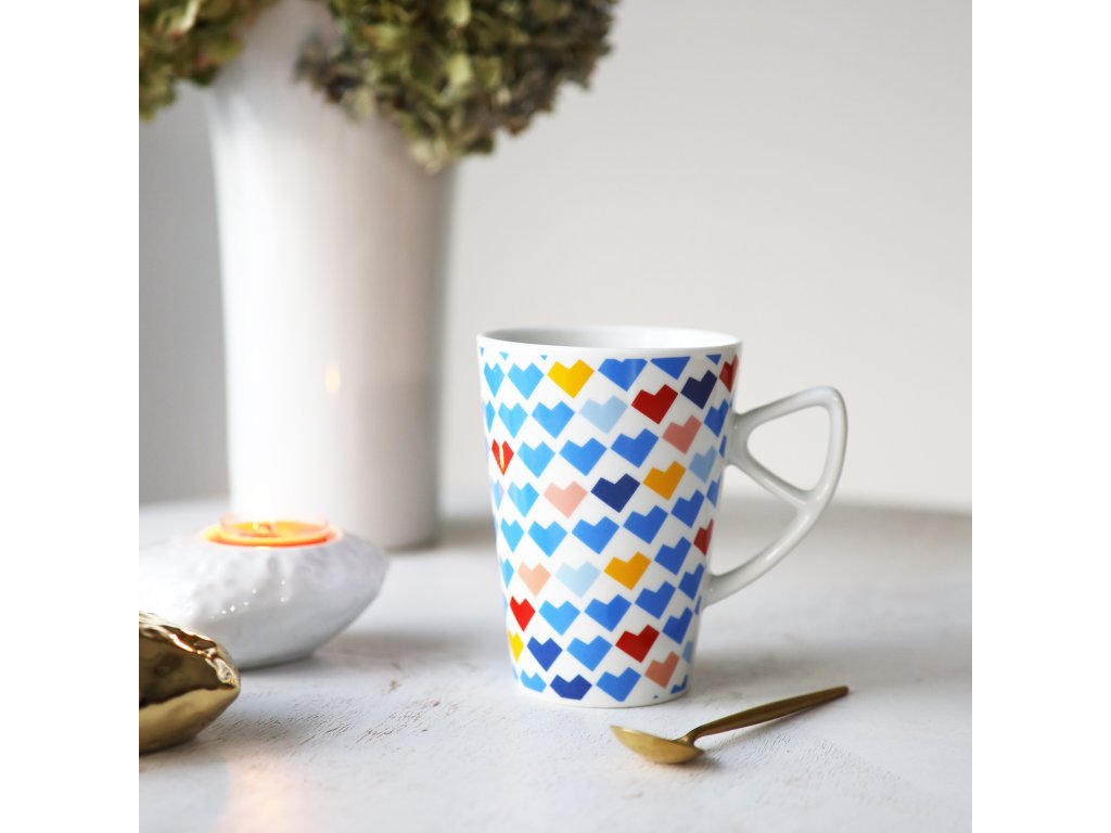 Originální porcelánový hrnek nadchne svým úžasně barevným dekorem, který sálá energií krásných odstínů nevšedně pojatých srdíček typických pro Studio Malíská. Stylový kousek z nejkvalitnějšího porcelánu si zamilujete! Snídaně, svačiny i všechny další chvíle s čajem nebo jiným nápojem se stanou krásnějšími. Hrnek má ucho navržené tak, aby se dobře drželo a nevypadlo ani z mokré, či nakrémované ruky. „Srdce jsou nadčasový motiv. Nakreslila jsem je pro vás v netradiční, originální hranaté podobě," dodává autorka.